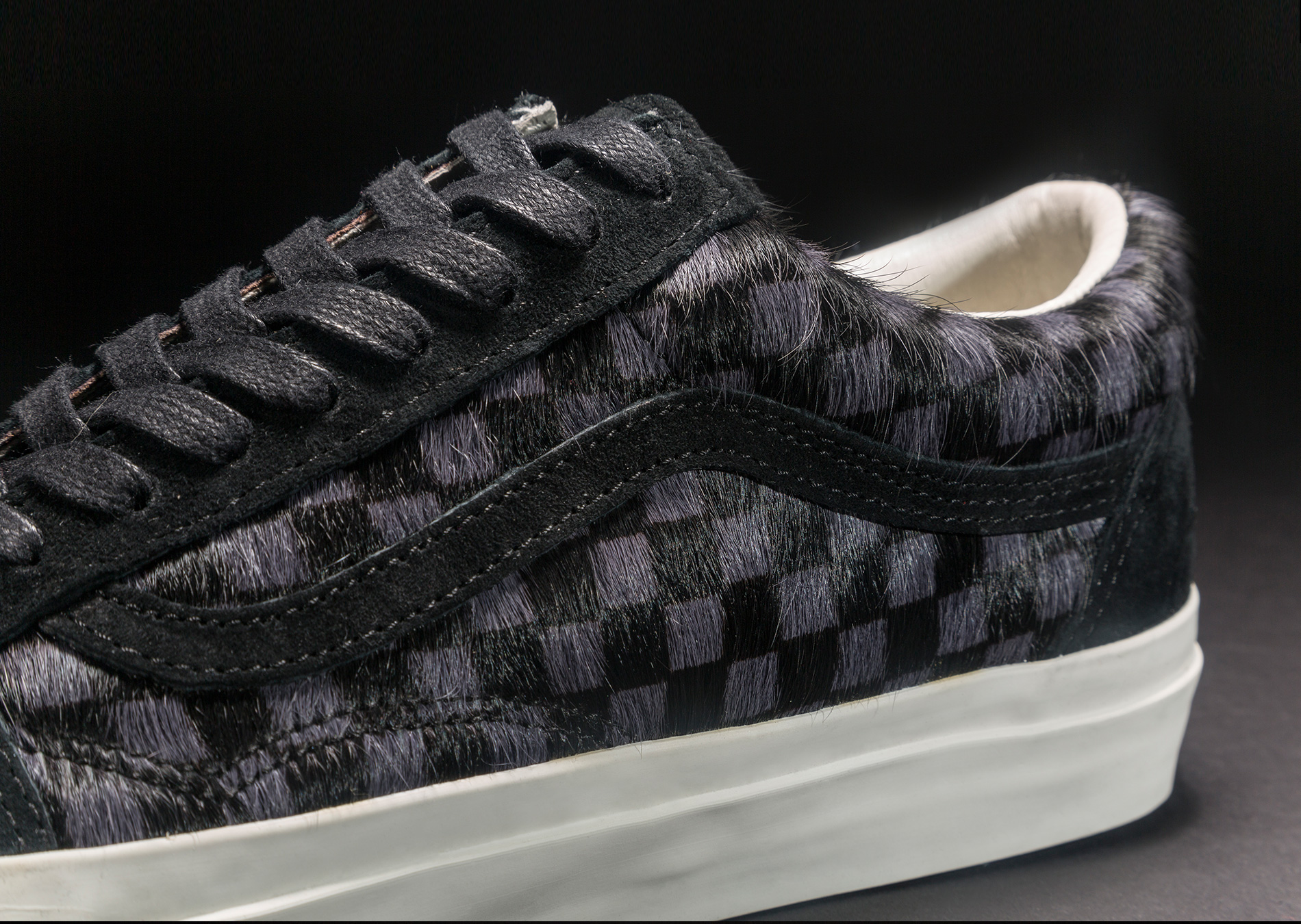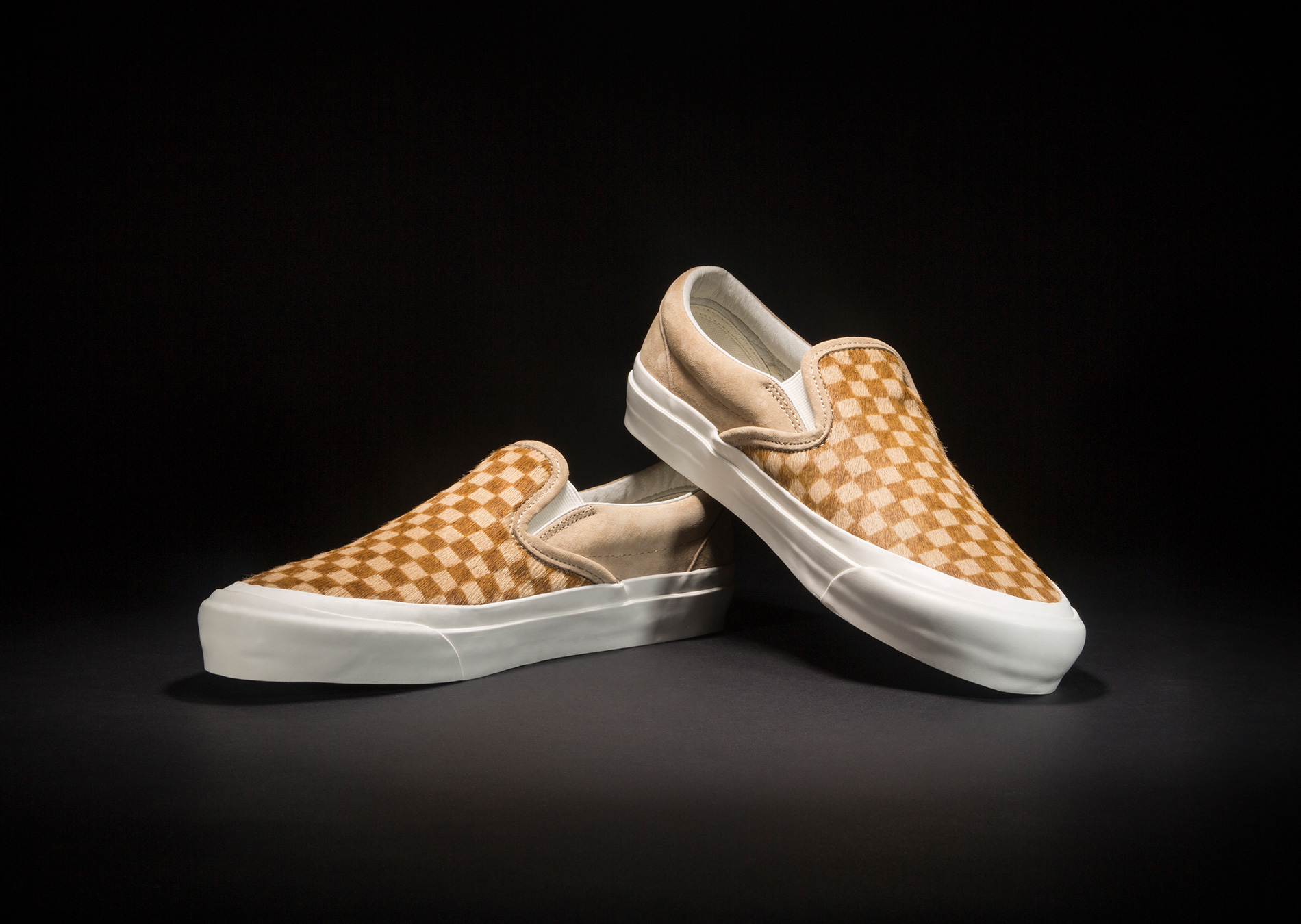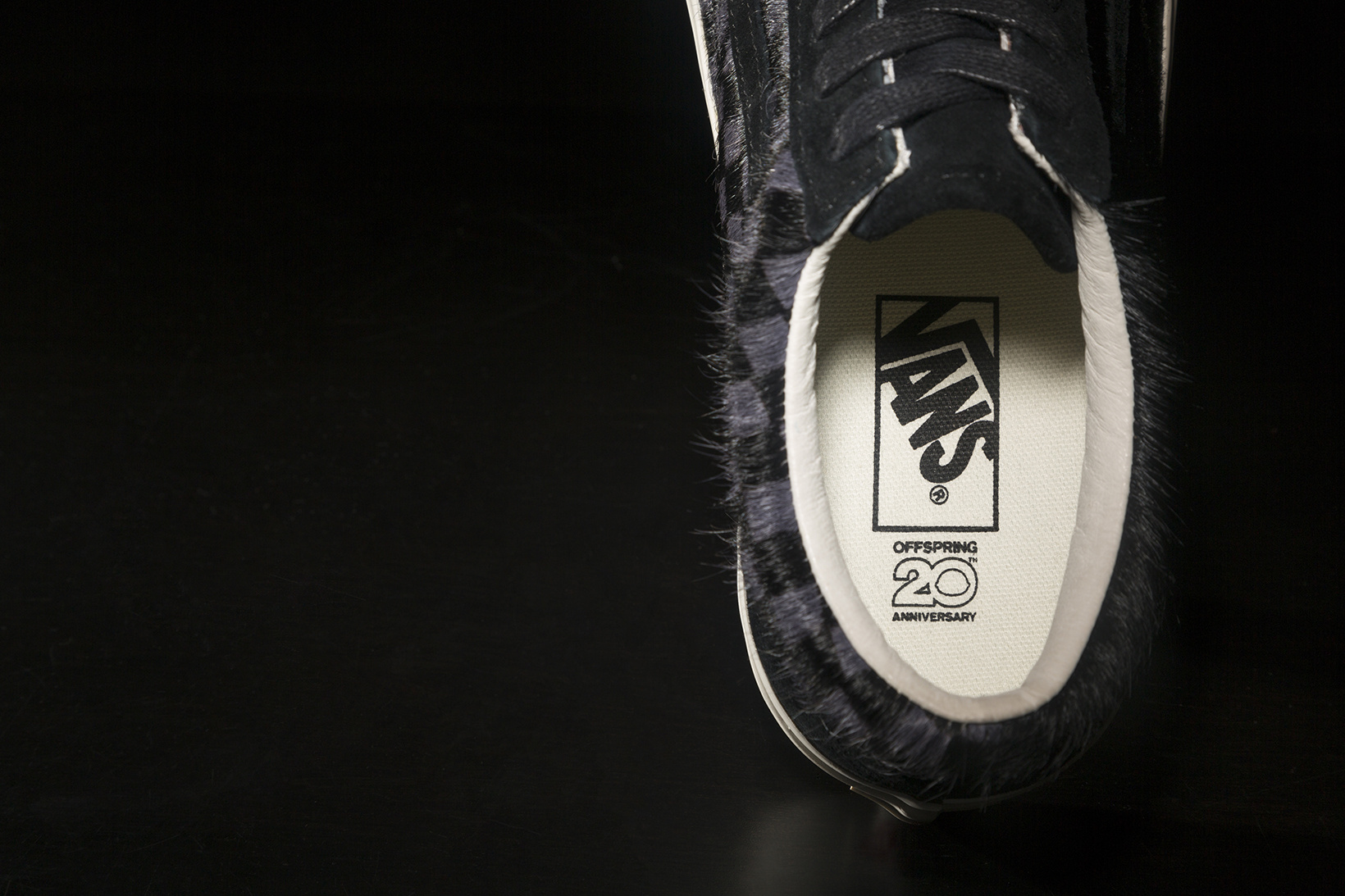 With heat embossed checkerboard pony hair uppers and premium leather detailing, the shoes are a reflection of the long standing history Vans & Offspring have of bringing special projects to life.”