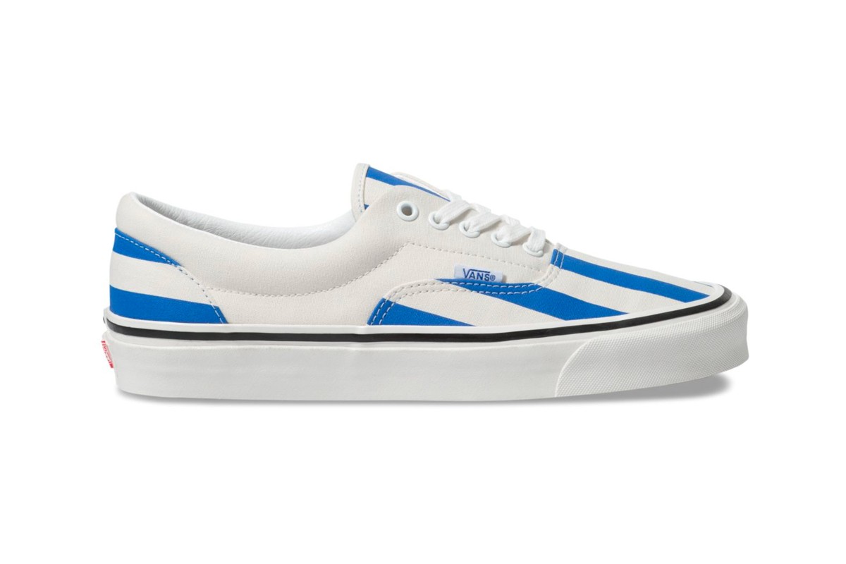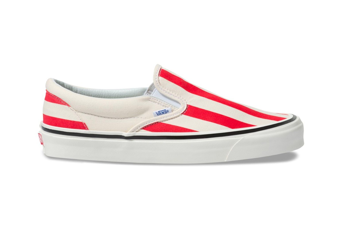 Check out the latest Anaheim Factory Vans to release. The Candy Stripe pack is what these are being called, featuring an Era 95 DX, and two Slip-On 98 DX’s. Each pair has the same wide-striped canvas prints that were one of the many wild prints you could choose from Vans, when designing your very own custom pair back at the Anaheim Factory. Take your pick of a red, green, or blue colorway for $80 each, and turn heads all Summer long. These are available now on the Vans store, by clicking through our link HERE, or by clicking on the pic above!