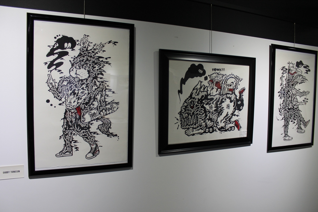 Please do yourselves a favor and make it a point to come out and visit Bait on a free day, and see what I am trying to poorly put into words for you all. The show was scheduled to run for 2 weeks, but it may run longer now, as their art gallery calendar has opened up recently. Also, if you’ve never been in to Bait before, prepared to be blown away by the awesome vinyl toy collection that is on display. I think it’s safe to say that it’s the largest display of a personal collection (most for sale by the way) in the country, and possibly the world! It’s awe-inspiring, and from what I heard, we drew a bunch of first timers to the shop that night, and plenty of jaws were dropping once they set foot into the store. Don’t forget, Bait carries all of your favorite brand name apparel, and their sneaker selection has been growing as well, with some pretty exclusive stuff to top it off.