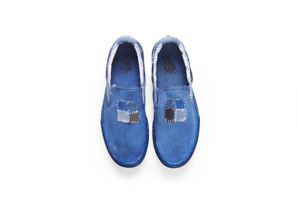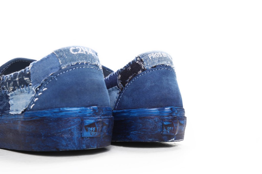 “C2H4 Los Angeles introduces the “Re-Blue Project,” a DIY-take on two classic Vans silhouettes. Taking on the classic Old Skool and the Authentic, C2H4 has meticulously deconstructed each shoe, applied hand-painted features, and revamped the shoes with details such as tonal leather laces, stripped eyelets, and a denim pattern overlay. Each shoe is unique in its own way and the limited capsule collection is available now, with the Old Skool retailing for $315 USD and the Slip-On for $280 USD.”