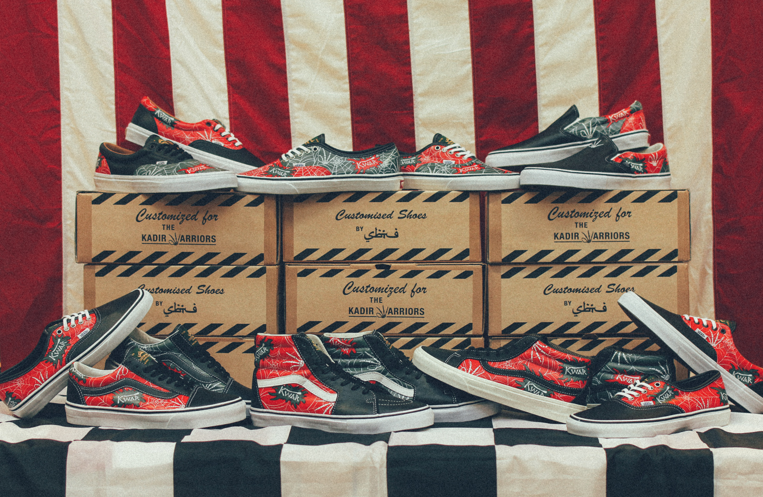 Those factors made him pitch this idea to Faisal, and after many conversations they finalized on re-appropriating an old Vans print (spiderweb) in the spirit of the love for Vintage, adding a short for Kadir Warriors logo, as KWAR, and their signature hand sign in Bone form. They chose this print as the spiderweb was a reminder of their bond as a family.
