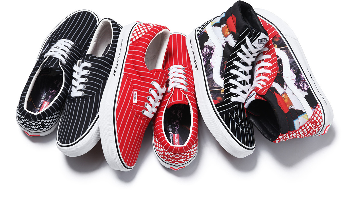 I really need to hand it to our UTP fam for knowledge of this release. Our member Wolfstrice09 stumbled across a Supreme LA employee’s IG account that had a picture of these Seylynn’s on it, stating that they were in at the shop. Wolfs’ tagged me in the photo, and asked if I knew anything about them, and I did! They were leaked about a year ago on a Vans employee’s IG feed (recognizing a pattern here?), stating that they were going to be an upcoming Supreme release. Well, fast-forward about a year and some months, and look what secretly showed up! Supreme has dropped the Seylynn “S” in store, without any prior news release or official launch. Sound familiar? Remember back when they dropped the Zero Lo “S” in Navy? It was an unofficial drop as well, however word spread to a few major blogs at the time. This time, nothing! Which made it nice for me, as I was able to stroll in about 3 days later and pick up my pairs. As most of you know, the Seylynn is the same shoe as the Zero Lo, and there’s no understanding why the name was changed around the time that 8FIVE2 released their Seylynn “S” collab with Vans Syndicate. There’s also another anomaly with this Supreme release. These were produced in 2012, as it shows on the box label, around the same time that the 8FIVE2 version came out. Perhaps there was a factory minimum? Who knows! All we know is that Supreme sat on them for a few years. There are 3 colors, black, red, and blue. I chose to pick up just the red and blue, as the black is identical to the OG Zero Lo “S” which I already have. The inside lining is red leather, like most Supreme Vans, and there is a Supreme logo stamped in gold foil, along with the Luke Meier graphics that are on all Zero Lo’s. These are awesome, and classy. Get on down to Supreme, to see what they have left. I imagine they are highly limited, and definitely worth adding to your Vans collection.