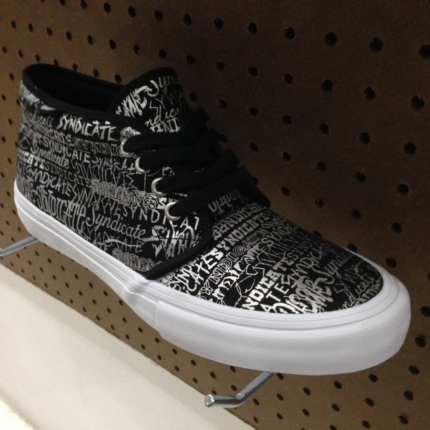 The night was filled with a lot of familiar faces, a few friends who I’ve met over the years through running OTWS/UTP, and I would never consider myself an industry person or an insider, but I sure got the special treatment, complete with the swag bags that were being given out to those industry folks, friends & family. The bag contained a special shirt made for the event that featured a column of S’s with each artist’s rendition of it. There was also a tonal black starter snapback with a felt “S” logo on it, an engraved “S” flask and pin, and the biggest surprise of the night, a pair of Chukka Pro “S” in black canvas, with silver screen printed “Syndicate” word logos printed all over the shoe, in each of the past Syndicate collaboration artist’s rendition of the word. What a nice final tribute to the first 10 years of Vans Syndicate. Simply amazing. The night ended with a bunch of us taking a big group photo. It was a small portion of the core group, but UTP/SV definitely represented.