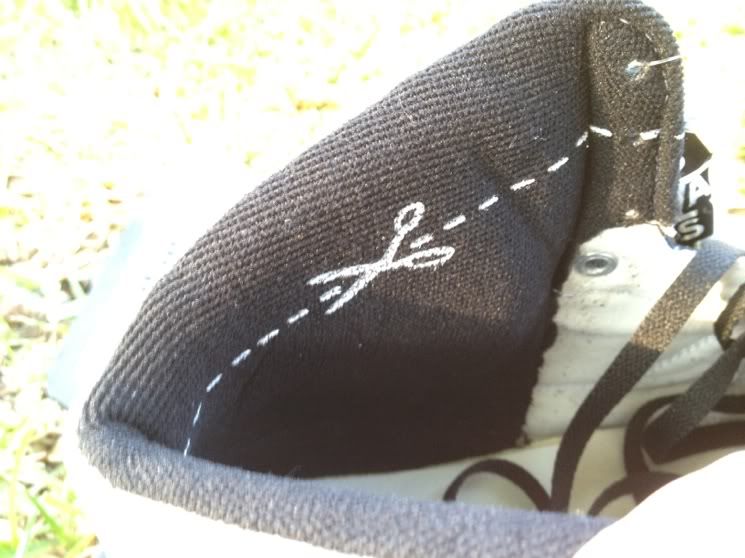 awesome!! made just like back in the day, notice the correct midsole for the time and the raised heel support on the top side of the insole instead of underneath? classsssic. also the dotted "cut here" line just in case you wanted to half em!