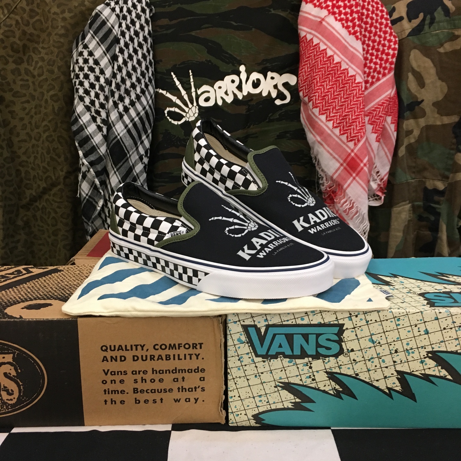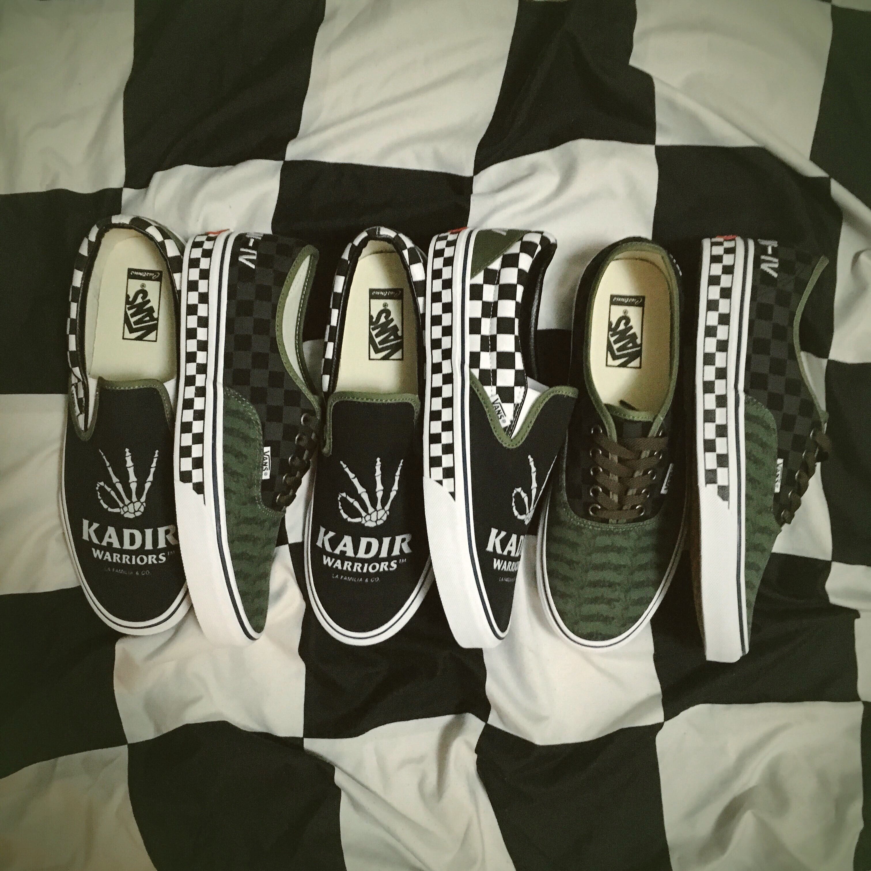 “We present to you, the Kadirwarriors x Vans Part IV, the ‘Checker Warriors’ or shorten for ‘CW-IV’. Silos of choice, were two of our favorite models: The style 44 & 98, also known as the Slip-on and Authentic. With the Vans Customs program, our entire Kadirwarriors came up with a design that we unanimously agreed upon, which we want to share with you here.