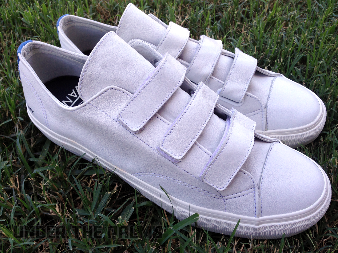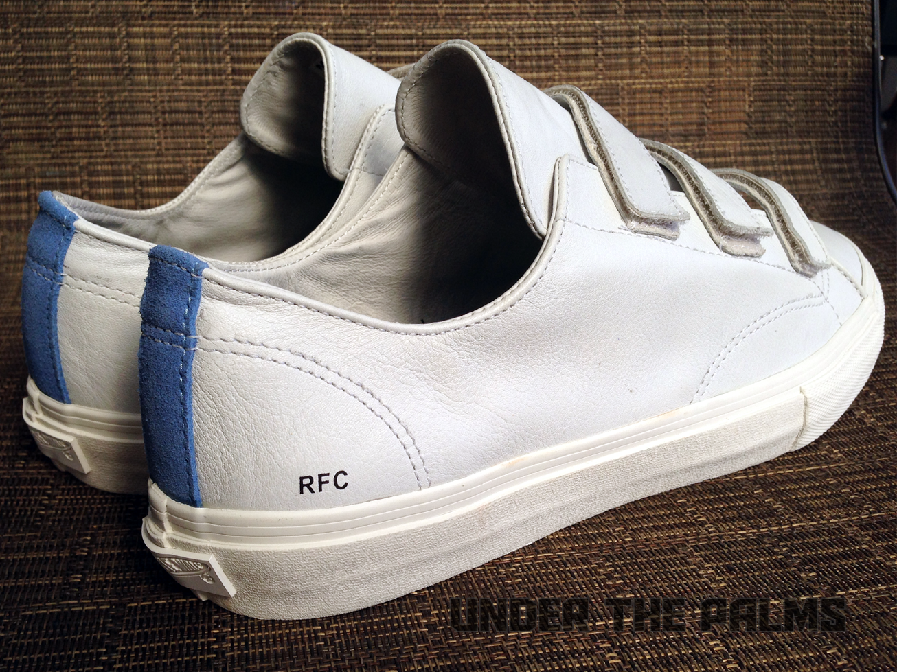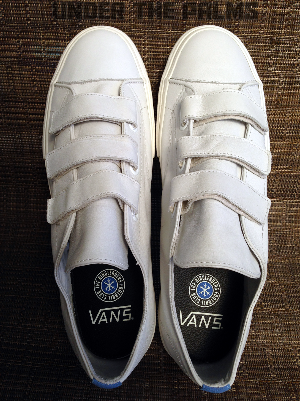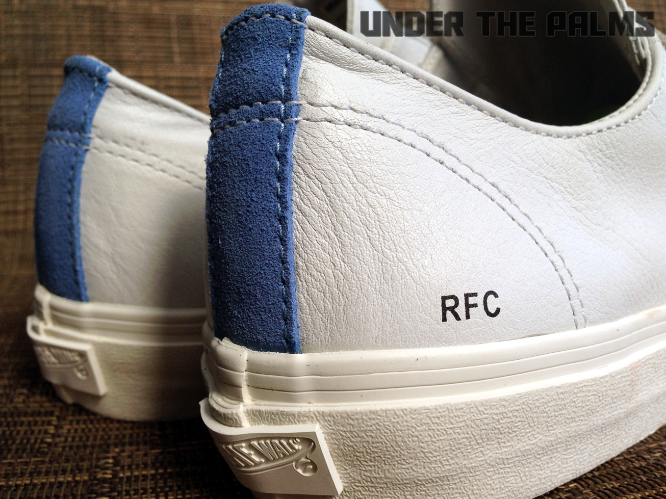 First off, the choice of using a Prison Issue was an awesome idea. This model doesn’t come around often, and if so, it’s buried amongst a lineup of other general releases at your typical Vans store, and the last premium pair we saw were the Vault perforated nubuck edition. The shade of white utilized on this Prison Issue LX is pure, and I’d say it has just a slight tint of gray compared to the all-white Vault leather pack that just re-released. The contrasting blue suede heel strip lets you know these aren’t your average pair, and the very minimal RFC lettering on the side of the heel doesn’t distract from the overall aesthetic. The heel pad lining has the Ringleaders custom logo, as every proper collaboration should include, and the rest of the footbed has a unique black and white pattern on it. Your favorite gum waffle sole finishes these off nicely.