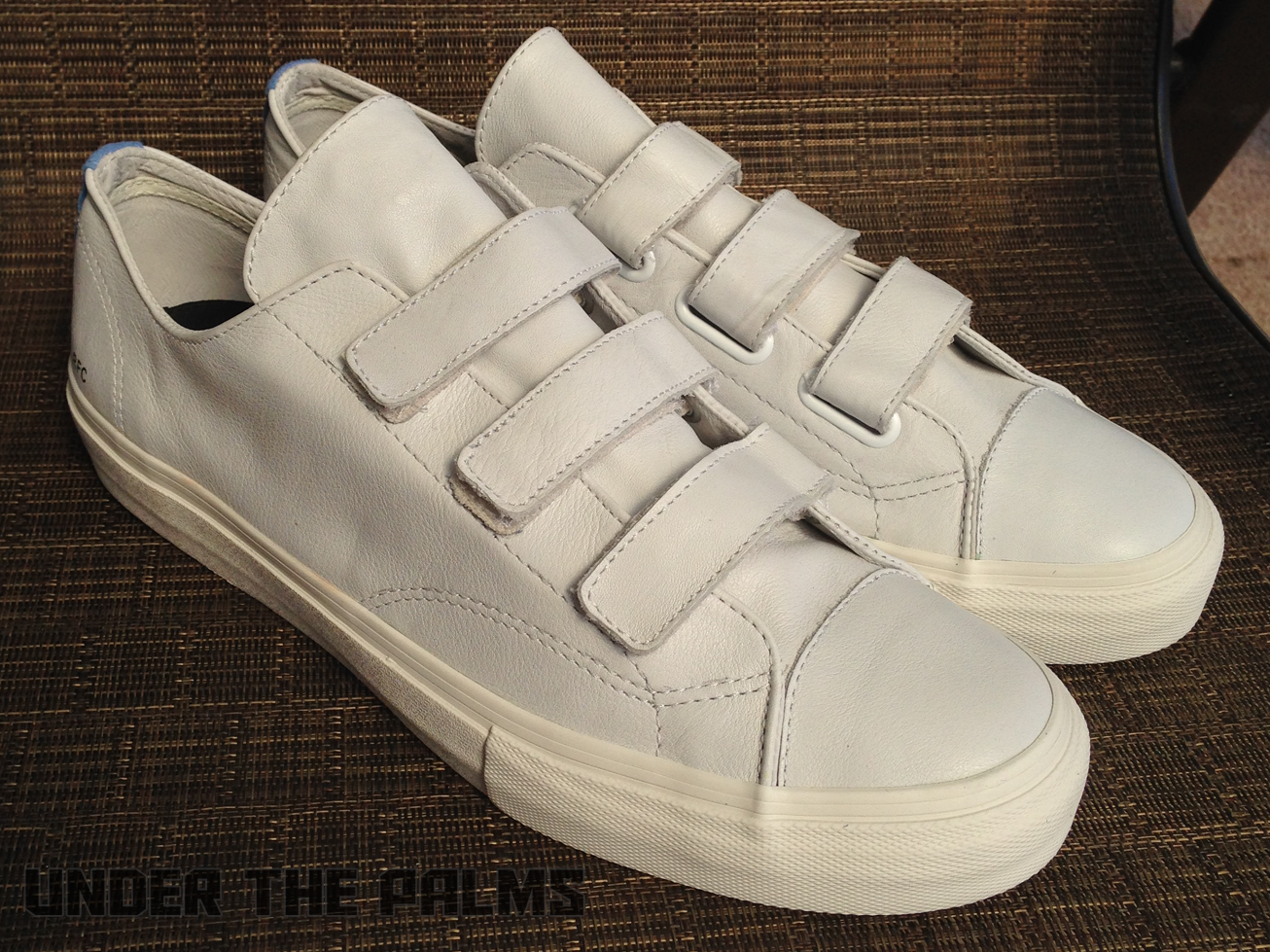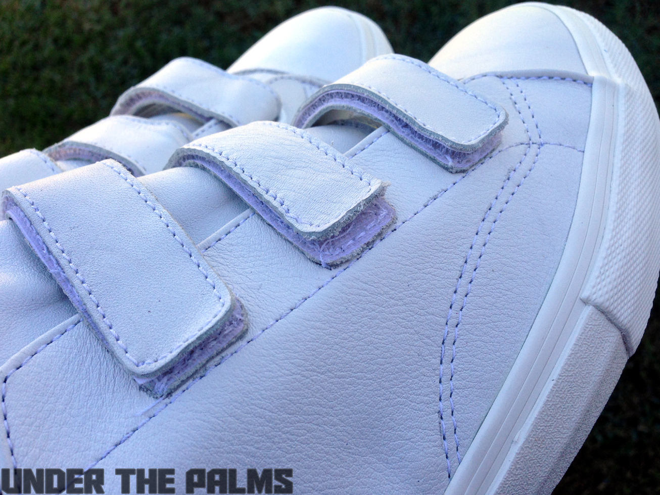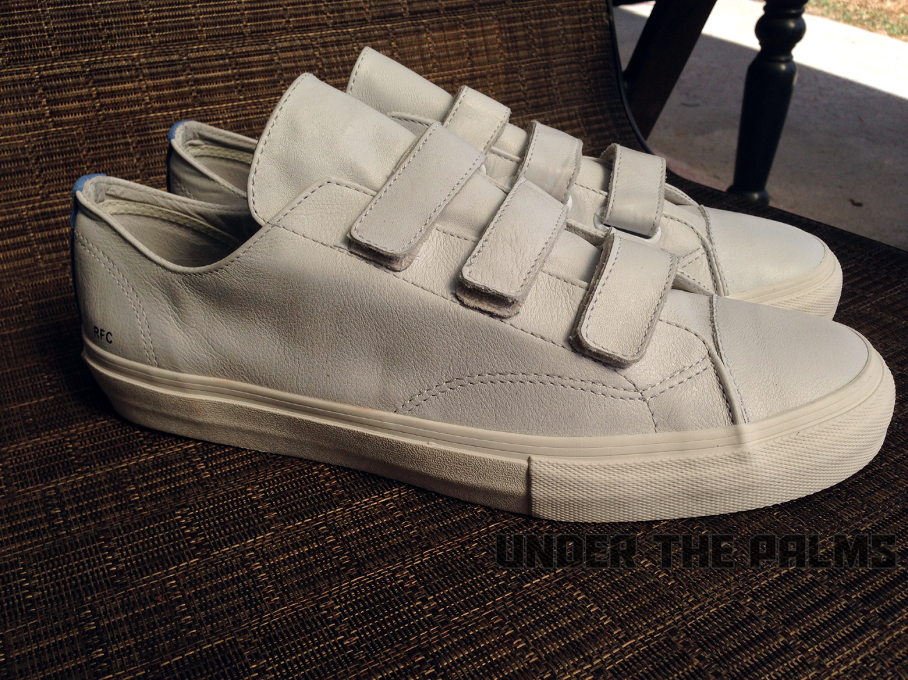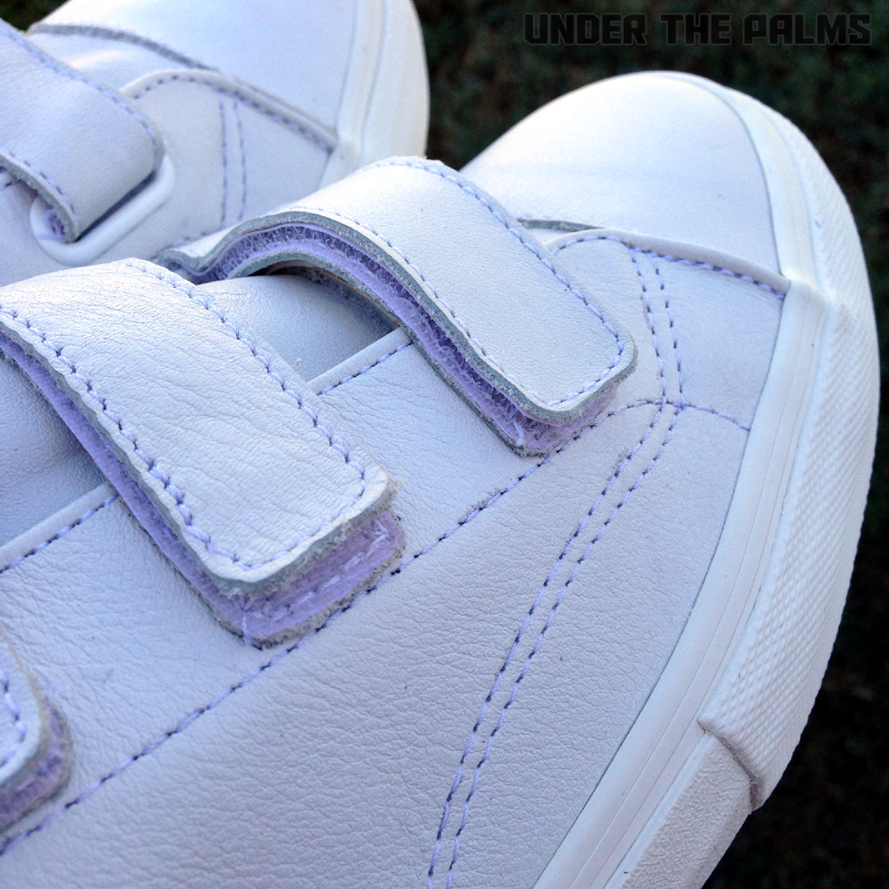 First off, the choice of using a Prison Issue was an awesome idea. This model doesn’t come around often, and if so, it’s buried amongst a lineup of other general releases at your typical Vans store, and the last premium pair we saw were the Vault perforated nubuck edition. The shade of white utilized on this Prison Issue LX is pure, and I’d say it has just a slight tint of gray compared to the all-white Vault leather pack that just re-released. The contrasting blue suede heel strip lets you know these aren’t your average pair, and the very minimal RFC lettering on the side of the heel doesn’t distract from the overall aesthetic. The heel pad lining has the Ringleaders custom logo, as every proper collaboration should include, and the rest of the footbed has a unique black and white pattern on it. Your favorite gum waffle sole finishes these off nicely.