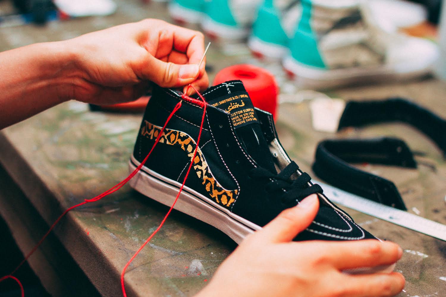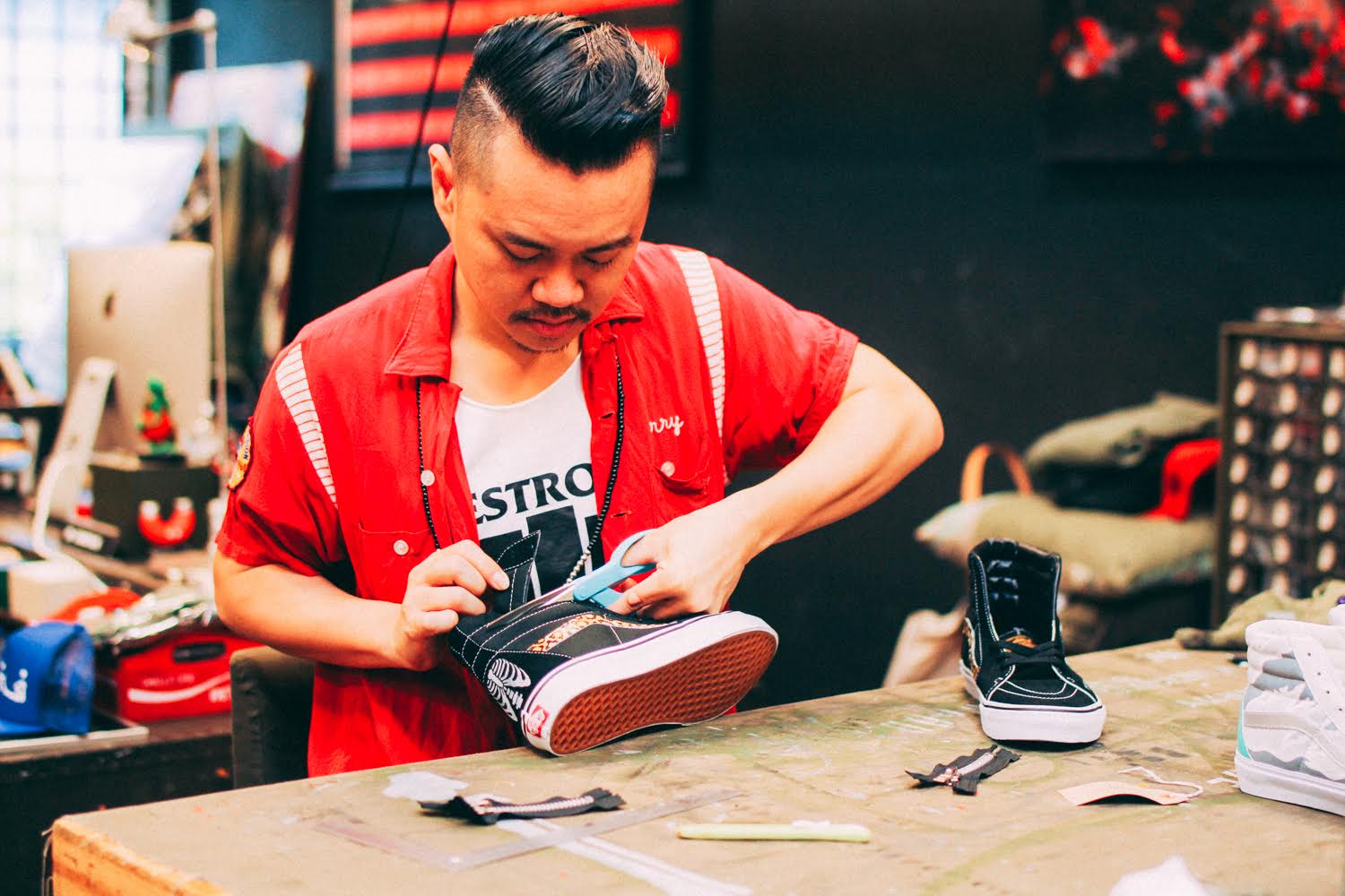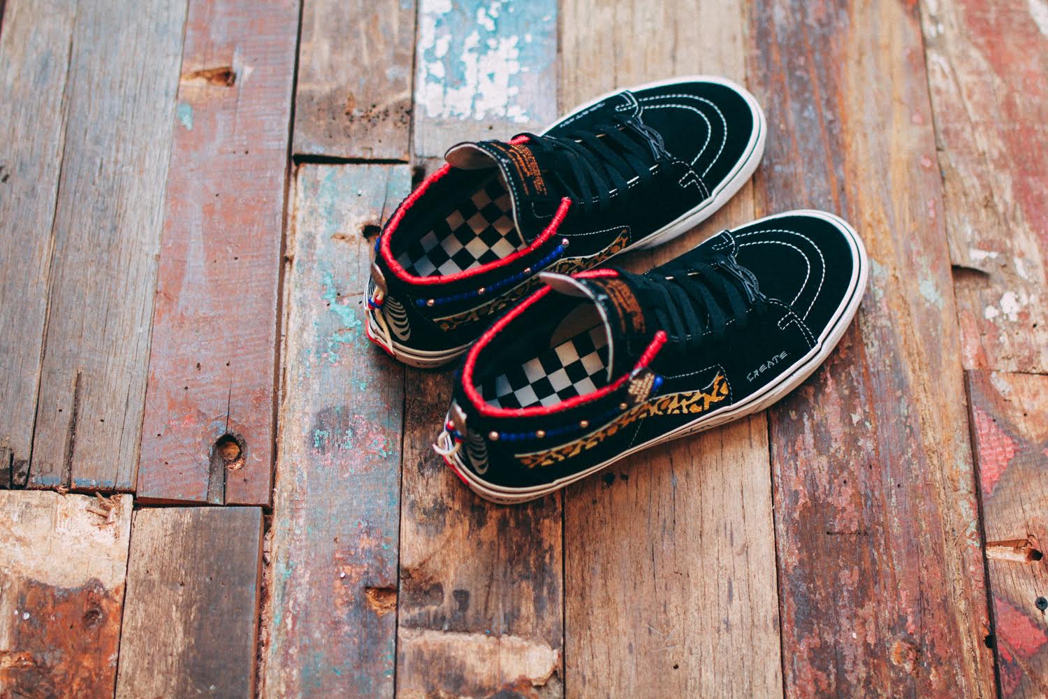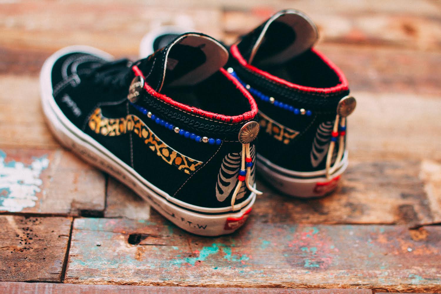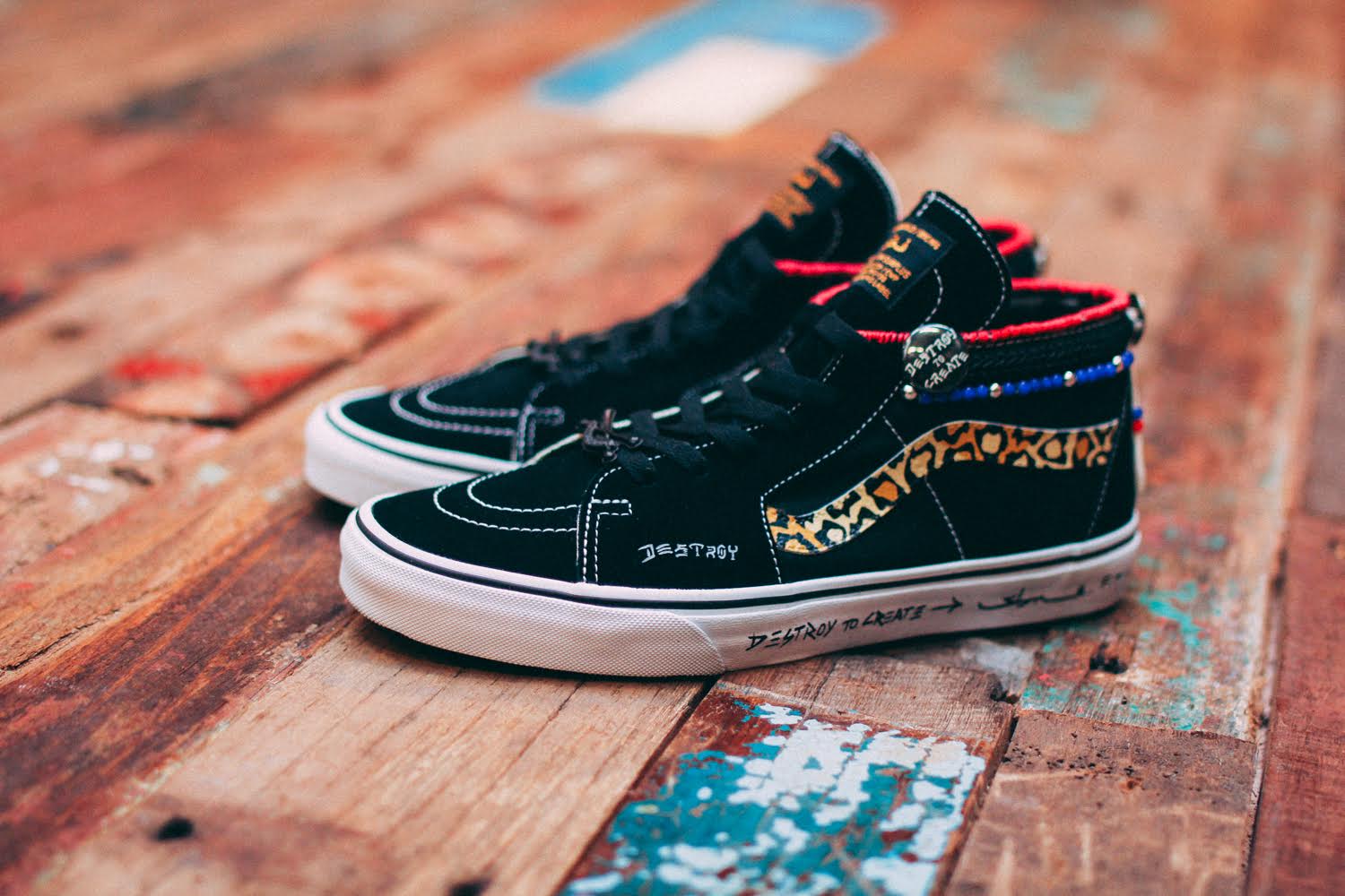 Vans Singapore has teamed up with sneaker artist and customizer SBTG for an event they’re holding on Sep. 24th at the House of Vans Singapore. Dubbed “Big Pants, Small Wheels”, SBTG has chopped down the Sk8-Hi into a mid, and added some intricate finishing details to the exposed cut ankle collar. There’s still some signature paint designs on the shoe, but the added thread and bead work are a nice addition to his newest Vans rendition. He also opted to add some words to the mid-soles, something we haven’t seen before. These are looking great as usual, and I don’t know how he was able to add more detail and have a price point that is lower than his past Vans shoes, but he did it! Each pair is only going for $333, which can be pre-ordered now on his site.