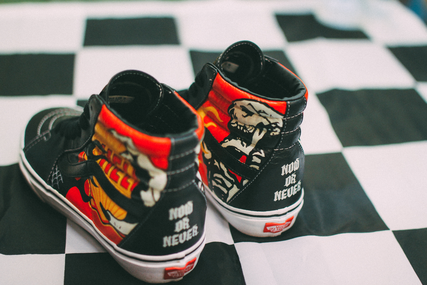 These elements are put together to suggest rebellion and freedom on 4 Vans Silhouettes.