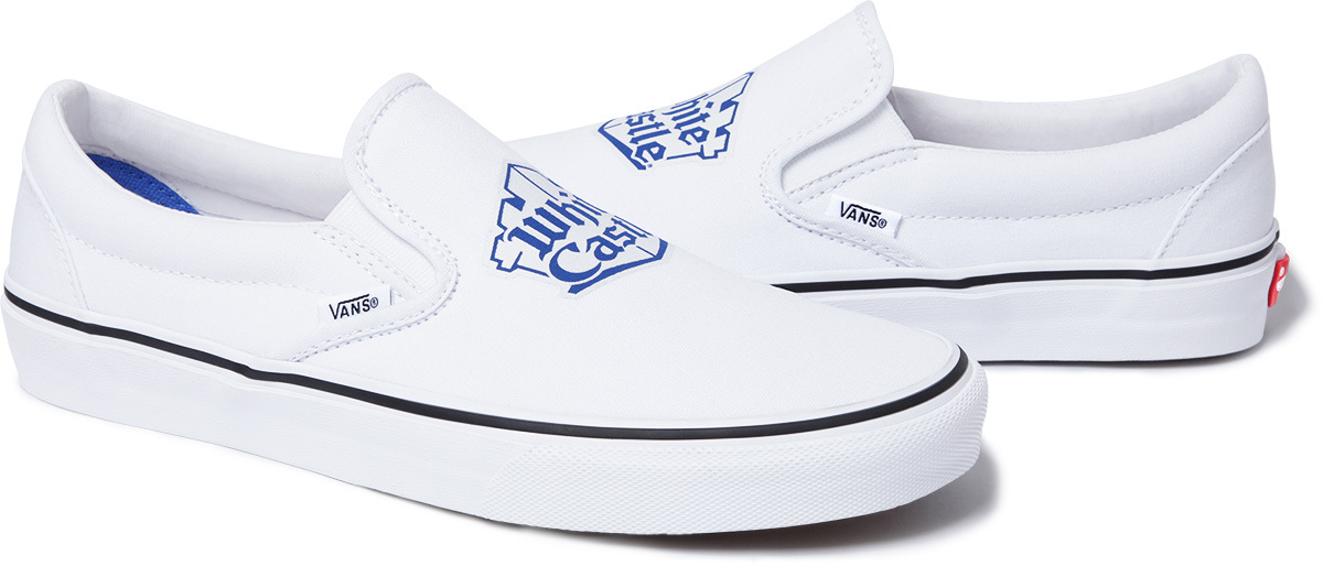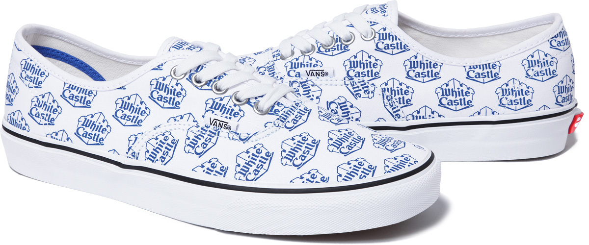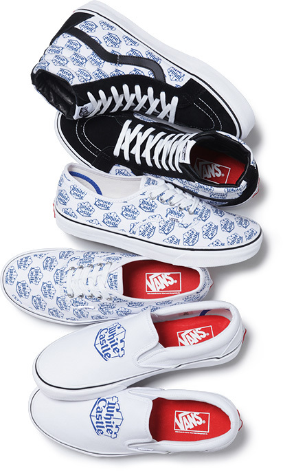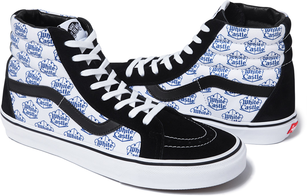 We finally get the official release info for the Supreme x White Castle collection. Nothings changed, but we now get the official release date, which is tomorrow April 30th. They’ll be releasing a Sk8-Hi, Authentic, and a Slip-On, each featuring the iconic White Castle logo.