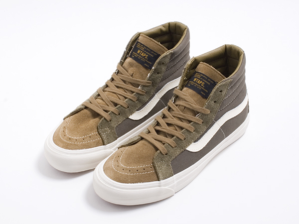 “Transformed into the “Firmament Recruitment Center” with customized dog tags and limited edition canteens distributed to those recruits that made that grade, Berlin’s Firmament recently played host to Tetsu Nishiyama as the famed designer unveiled the upcoming WTAPS x Vans Vault collaboration for Fall 2013. Reinterpreting some of the most iconic Vans styles, the WTAPS founder and creative director gave the Sk8-Hi, Chukka Boot, and Classic Slip-On the TET treatment with military-inspired designs that draw philosophies from Japan’s master craftsmen. Thus, the first ever collaboration between WTAPS and Vans’ Vault range sees the silhouettes with utilitarian canvas and suede construction in subtle shades of navy, olive, black, and brown. Comprised of six different designs in all, a limited number of 50 pieces are available exclusively at Firmament ahead of the WTAPS x Vans Vault 2013 fall collection’s worldwide debut on August 15.”