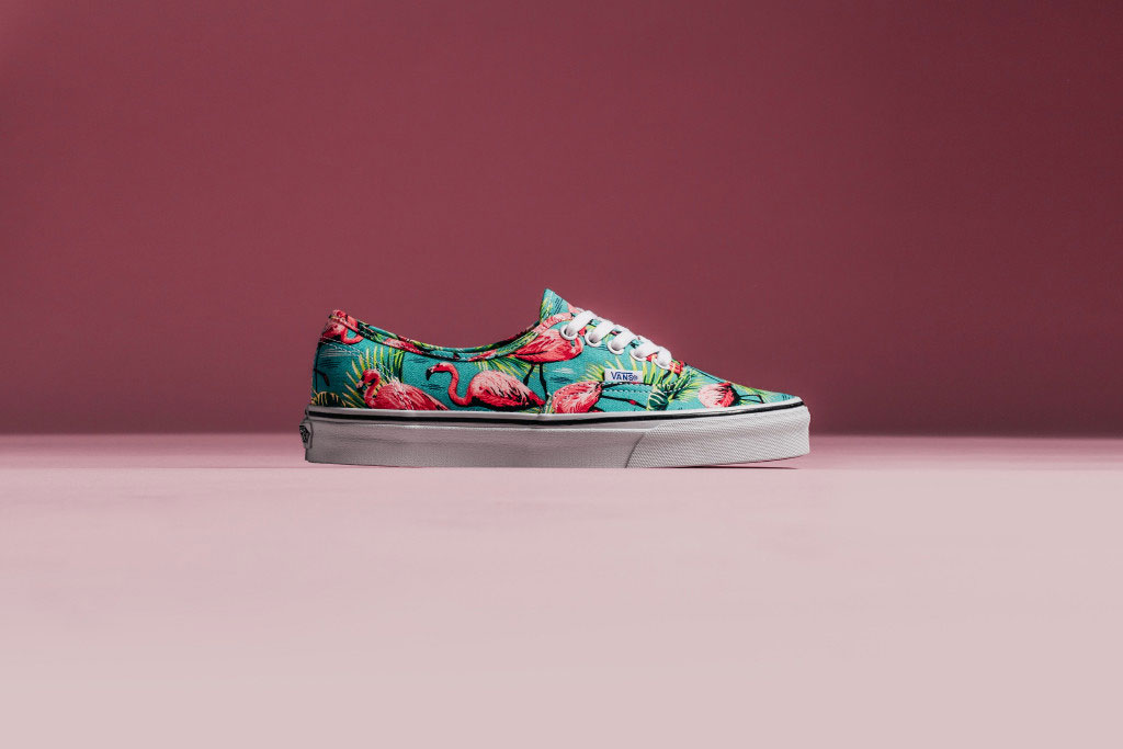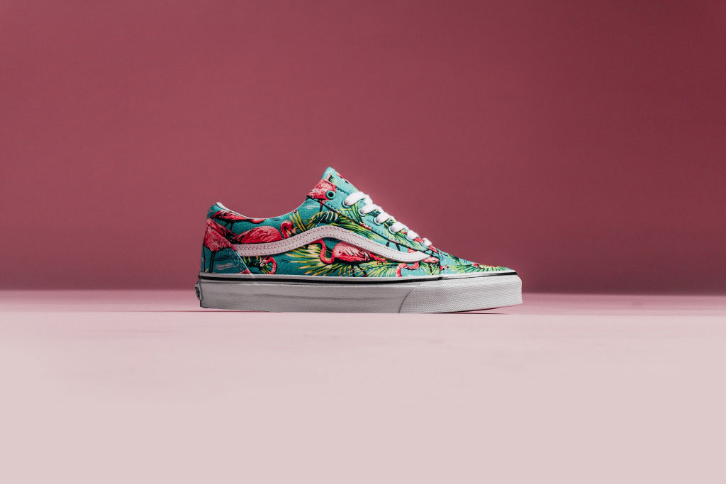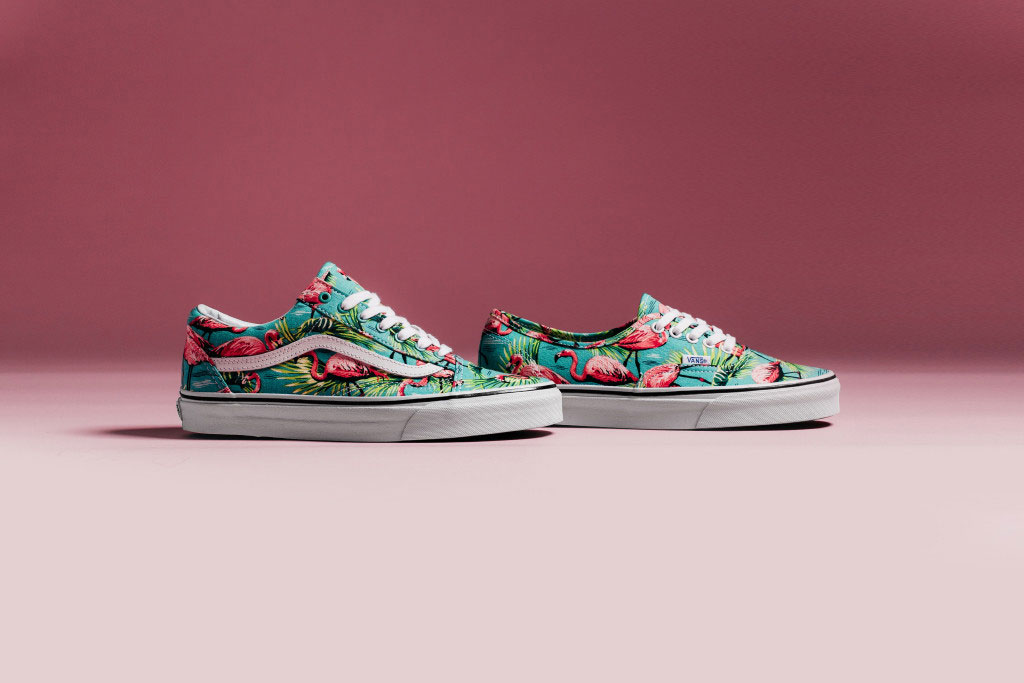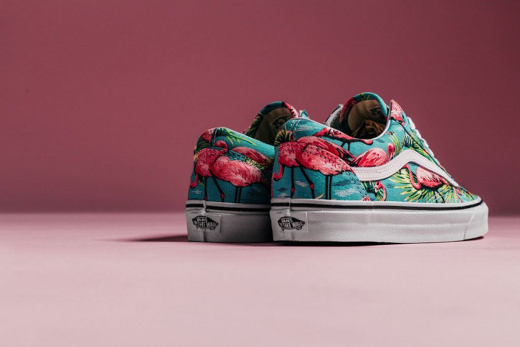 Check out one of our favorite Van Doren releases for the summer, dubbed the Flamingo Pack. Featuring an all-over vintage inspired print of Flamingos, in a mostly pink and turquoise color combination. The pack consists of an Old Skool and an Authentic, both sitting on top of a white midsole with the standard Van Doren black foxing stripe. These are available from the Vans webstore now by clicking on the pic above. Support UTP!