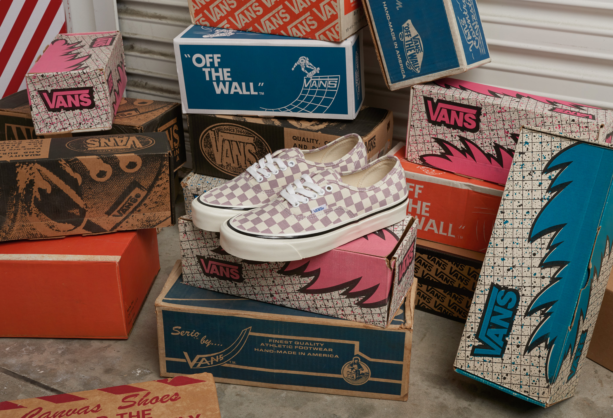 The Authentic 44 DX and Style 36 DX were developed to match the original construction of the Classics that were produced in the first Vans factory in Anaheim, California. Cotton laces, heavy 10 oz. canvas, style numbers, original drill lining found on the heel of each shoe and a higher glossed foxing tape that captures the sheen that came from the original vulcanization process, are all design elements that were seen over 51 years ago. As a nod to the retro styling, Vans designers dressed the Authentic 44 DX and Style 36 DX with Checkerboard in OG black and mauve colorways. Along with the timeless design, each model has been upgraded with an UltraCushÔ sockliner delivering modernized comfort.”