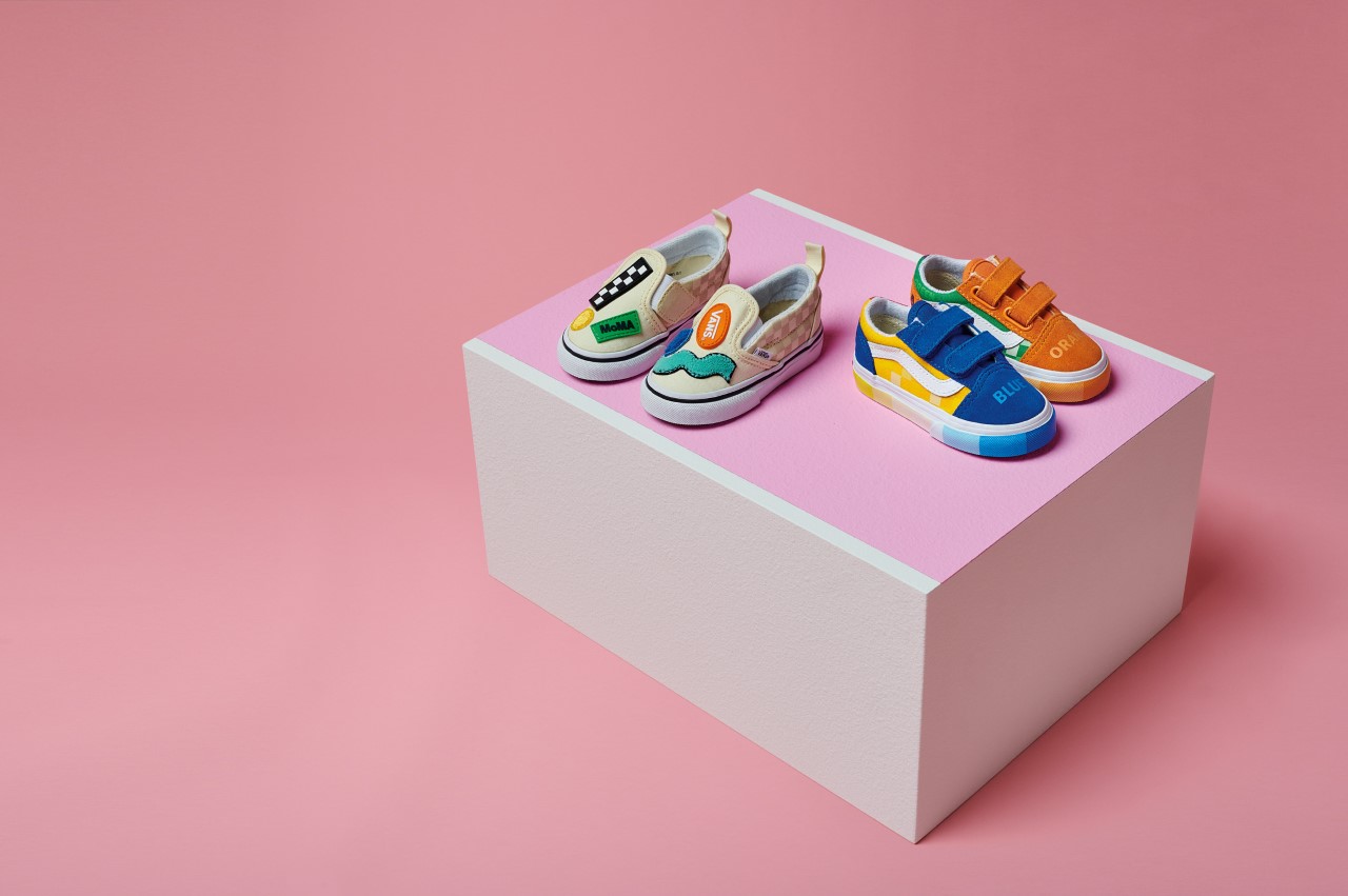 To spark creative expression and engage children with art, the expansive Vans and MoMA collaboration will also offer an exclusive kid’s and toddlers range. The kid’s product line focuses on color and interactivity. Vans worked with MoMA educators to develop a Classic Slip-On with hook-and-loop shapes, which allows kids to customize their shoes and provides a hands-on creative experience. The Old Skool style offers a unique opportunity to educate children about color theory and color mixing by creating a strong distinction between primary and secondary colors in its aesthetic. The Vans and MoMA Old Skool and Old Skool V will include a special hang tag affixed with a genuine color wheel, offering the opportunity to educate children about color theory.