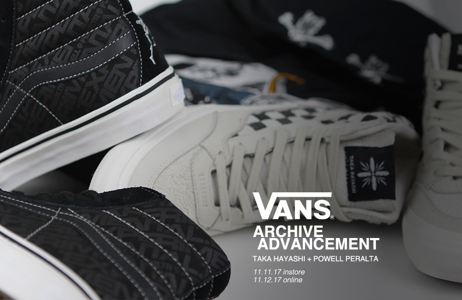 “Crafted in collaboration with Japanese artist and Vault by Vans designer Taka Hayashi, the Vans Pro Skate ArcAd Powell Peralta x TH collection commemorates a decades-long legacy of innovation in skateboarding, showcasing unforgettable imagery from Powell Peralta’s signature skate deck graphics archive. The capsule breathes life back into memorable illustrations such as the 1985 Future Primitive logo, Bones fonts, and the principal skull and sword graphics for which Powell Peralta is known.