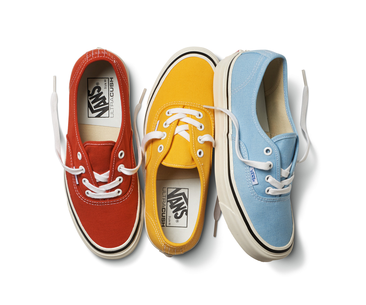 Every design element within the Anaheim Factory pack could be dated back to the late ‘60s and early ‘70s. Style numbers are used to signify the original design mold of three footwear models – the Authentic 44, Old Skool 36 and Sk8-Hi 38. Each style utilizes a marshmallow sidewall with a higher profile and is treated with a slight sheen that was present after going through Vans’ early vulcanization process. The entire offering features a heavy 10-oz. canvas and the Sidestripe models showcase a suede toe cap, heel counter and eyestay. All colorways including the racing red, mineral green and light grey could have been found when you visited the original Anaheim Factory store. Vans has equipped each silhouette with a premium UltraCush footliner so you can enjoy a modernized take on one of Vans Classic Icon silhouettes.