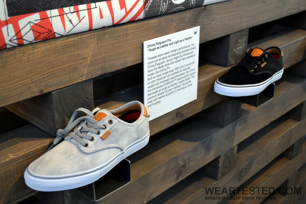 Up until now, we’ve only had some teaser photos of Vans team member Chima Ferguson’s new pro model shoe, and thanks to WearTested.com, we now have a better look. They attended Bright Show 2013, where they were able to preview the upcoming seasonal offerings from all of your favorite brands. These were designed by him, for him, and they look like a cross between a Zero Lo, a Chukka Low, and an Era. Taking cues and shape from each mentioned model, he came up with a sleek, fresh design for himself. Featuring the same vulcanized sole that we all love, but TPU reinforced to allow it to last a little bit longer. It will initially be released in a black, grey, and a navy patterned canvas version, featuring small leather accents here and there. Stay tuned for any release info.