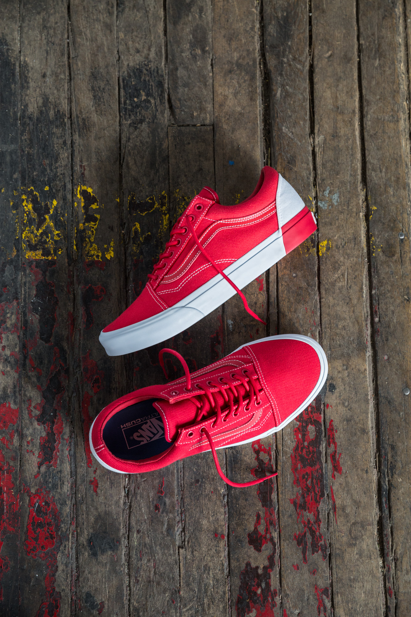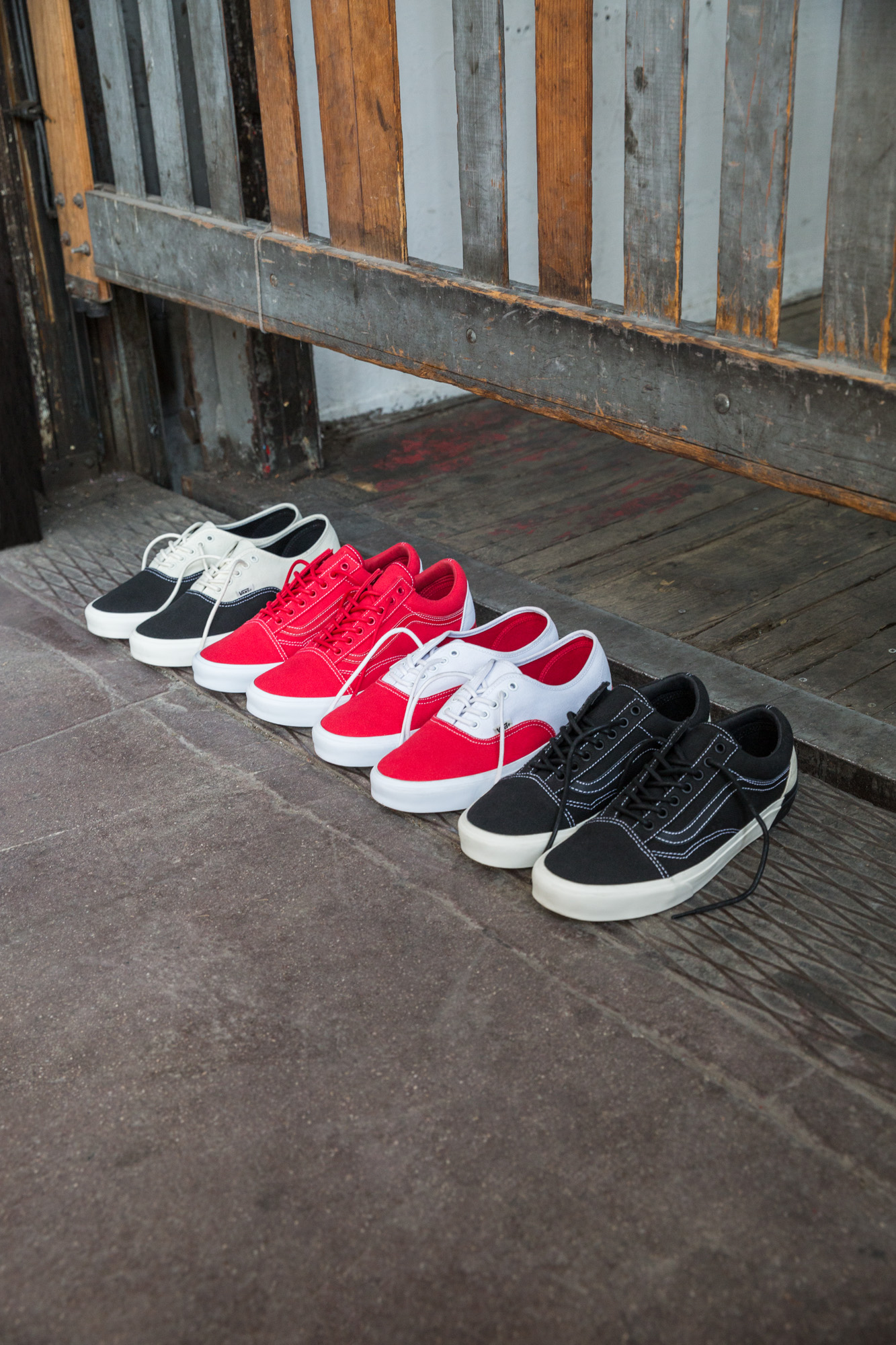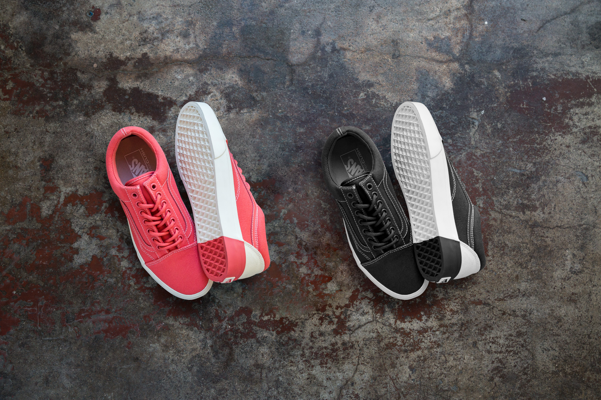 Vans designers juxtapose classic white canvas against bright racing red, dark slate gray, classic black, deep coral and faint lavender across the Authentic DX and Old Skool DX. The rich color tones on the Authentic DX begin at the vamp and transition to the heel friction and foxing. The color-block detail on the Old Skool DX is carried over the vamp, quarter panel and leather Sidestripe with a minimal appearance on the heel friction and foxing. The sophisticated color combinations result in an optical effect that gives color-blocking a clean look with a contemporary twist.