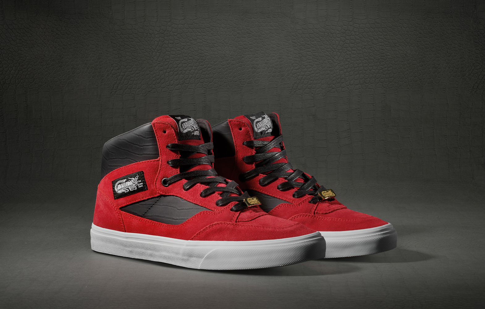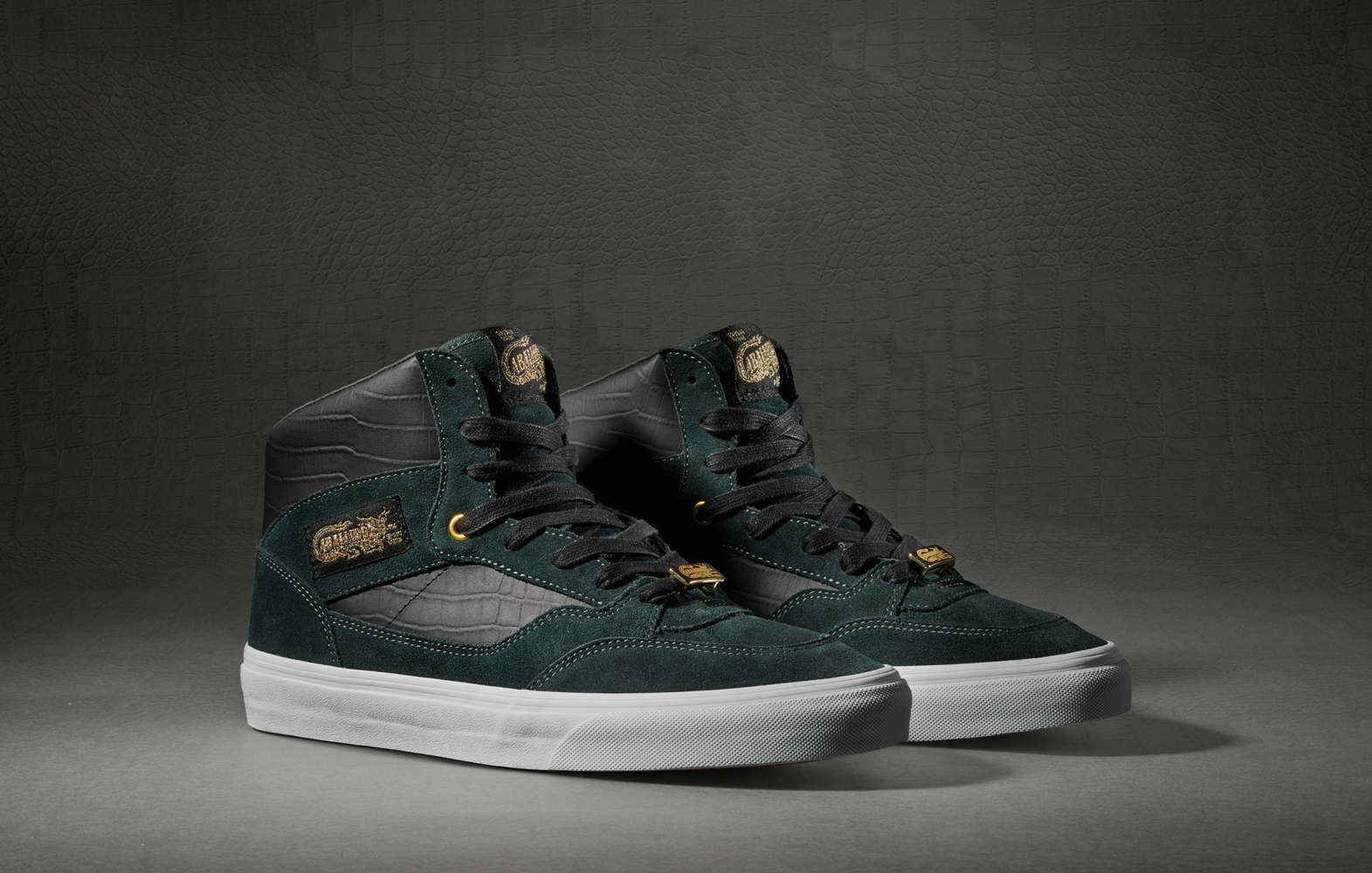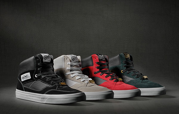 “Building off the legacy of the brand’s first ever signature shoe, Vans presents an updated take on the Full Cab. Featuring suede and crocodile embossed leather with an all-new gold dragon lace lock, the high-top is offered in four seasonal colors including blanc de blanc, black, racing red and the Foot Locker-exclusive: scarab green. The Full Cab is arguably the first signature athlete shoe to be released in the skateboarding industry and has continued to define skateboarding footwear for the better part of a decade. Built with function, performance and protection in mind for the quickly evolving vert skateboarding scene of the early ‘90s, the shoe has steadily transitioned into a lifestyle staple. Originally named the Caballero, the shoe was first released in 1989 and today, represents the first wave of signature shoes in skateboarding. Steve Caballero himself played an instrumental role in designing the Full Cab.