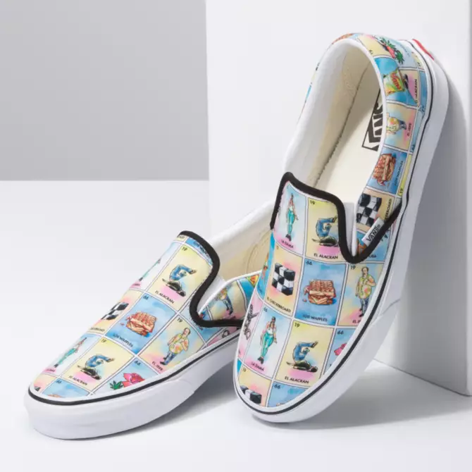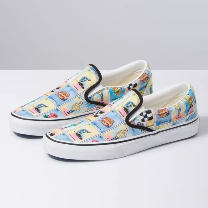 Here’s a fun new general release pair for you all. Vans has created this pack, taking inspiration from the popular Loteria game, featuring various Vans-themed artwork. The Slips are $60, and the Old Skools are $65, and are available now from the Vans webshop.