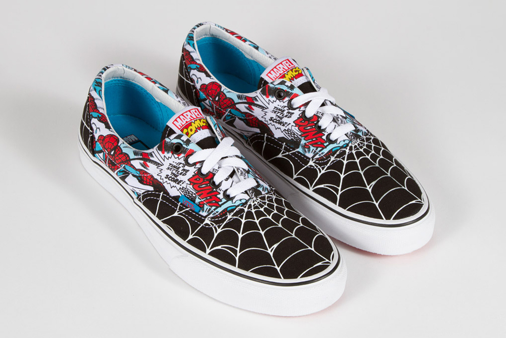 “Calling upon the likes of Spider-Man, Iron Man, Captain America, The Incredible Hulk and Thor, Vans has teamed up with Marvel for a collaborative collection of footwear. Featuring the Era and reissued edition of the Sk8-Hi, the collection sees comic strip graphics showcasing Marvel’s iconic superheroes while collaborative branding hits the tongue of each silhouette. Complete with custom packaging and additional details like leather vamps, bolted hexagonal eyelets and embossed spiderweb graphics, the Marvel x Vans Classics Spring 2013 Collection is now available at select stockists while a special edition of the Era – featuring a group collage of The Avengers – is set to drop in March.”