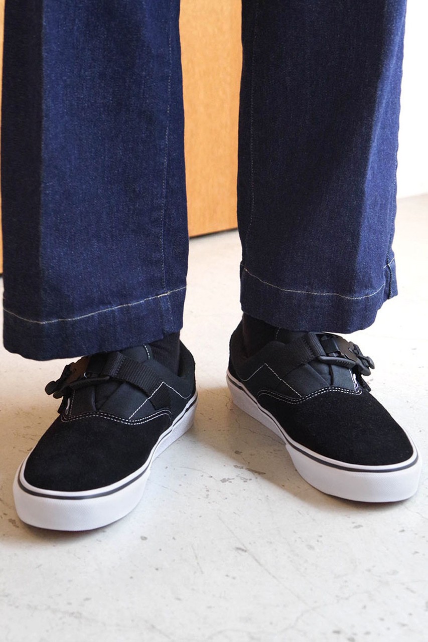 Executed in waterproof nylon and neppy suede, the low-top skate shoes boast eVent lining, combining weather resistant functionality with maximum breathability. To further elevate the sneaker, an extra-grippy outsole ensures stability on icy sidewalks and the laces have ben swapped out for a hefty magnetic buckle courtesy of Germany’s Fidlock. Simultaneously secure and simple, the buckle allows for single-handed detachment for easy access”.