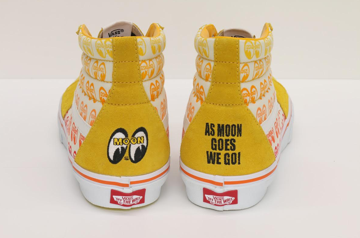 The 2016 Yokohama Hot Rod Custom Show is just around the corner, and Vans has teamed up with Mooneyes to create two motorsports inspired shoes, by way of a Sk8-Hi and a Slip-On. Both feature familiar branding logos throughout the shoe, but each are entirely unique of one another. The Slip-On comes in a gray canvas mockup, with a black printed canvas ad on the toe, with a very cool brushed metallic silver heel panel, complete with labels, derived from Mooneyes gas tanks which they are most widely known for. The Sk8-Hi is done up in a yellow suede vamp, with a canvas side panel printed with the Mooneyes logo in a yellow to red gradient. The custom details don’t stop there, as the ollie pads, and heel panel also feature custom embroidery and the top eyelets are plugged with a metal stud. Both pairs finish off nicely with custom printed footbeds. These will be available in highly limited quantities at this year’s YHRC Show on Dec. 4th, 2016. If you’ll be in Japan during this time, you may want to stop by and check this show out, as it’s become one of the premier motorcycle shows in the world. More info can be found here.