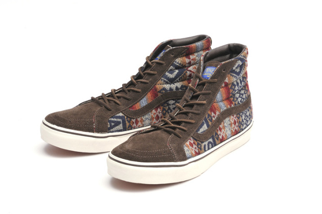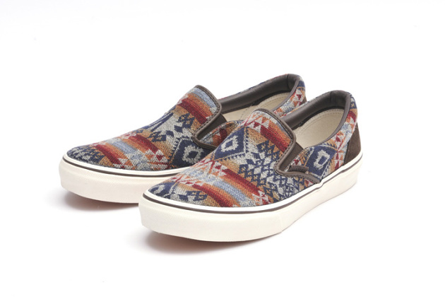 Vans Japan has teamed up with Pendleton to create this great collection right here. All three feature an all-over Pendleton wool upper with signature design. Brown suede and leather details stand in contrast and underline the premium nature of the small footwear collection. Look out for a release at Japan’s ABC-Mart soon.