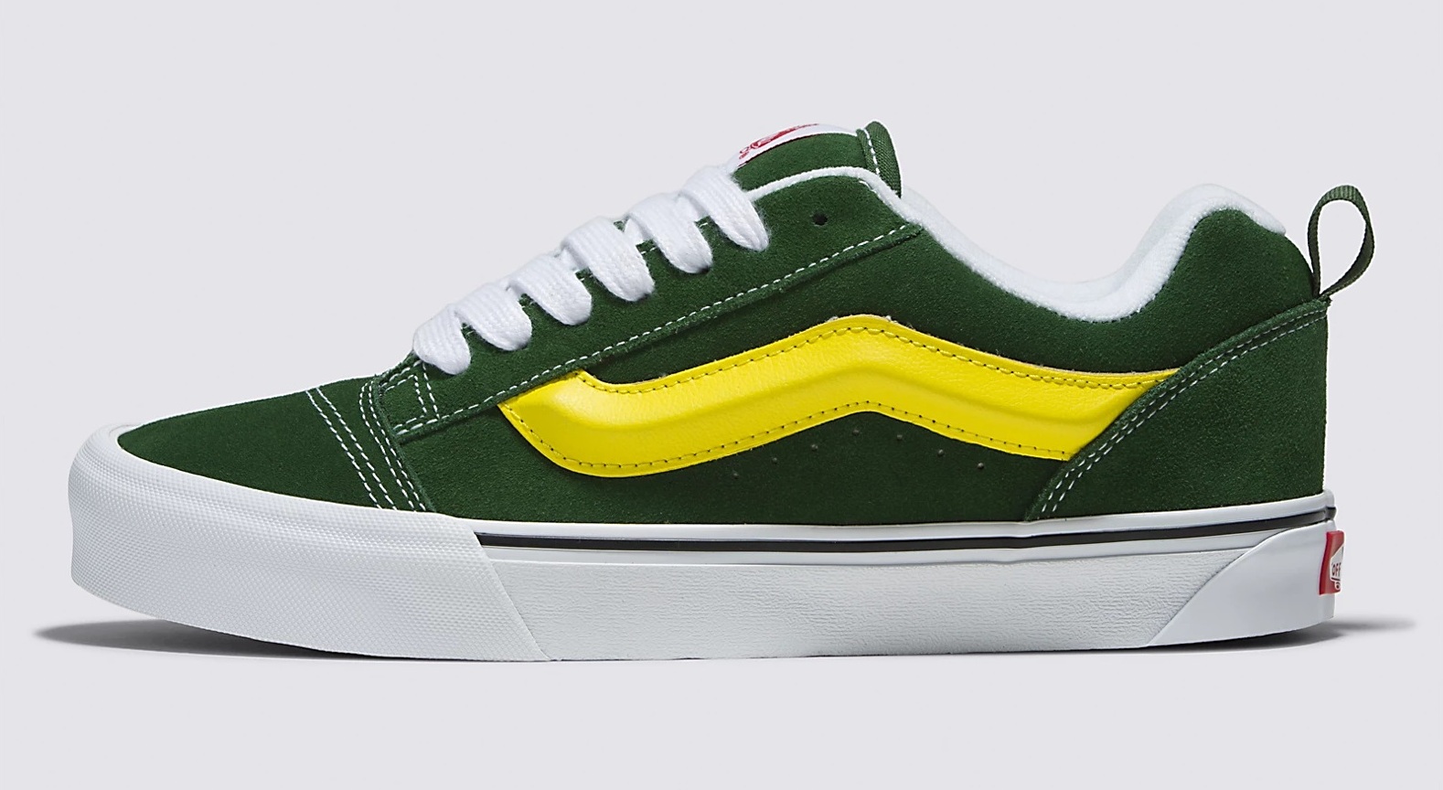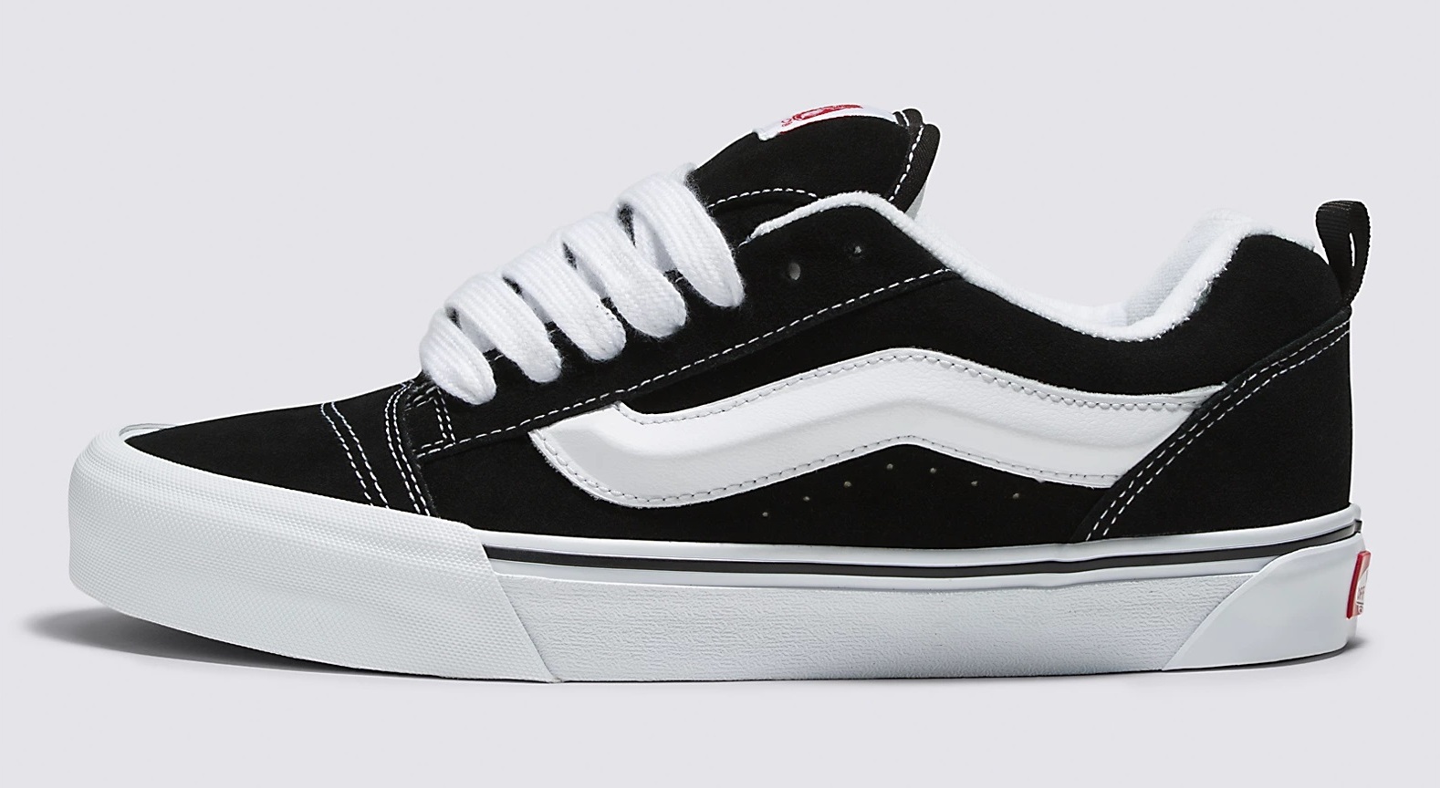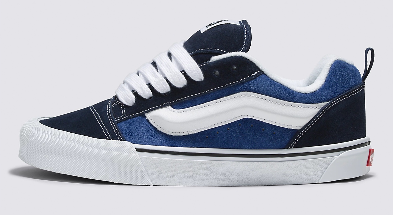 The Knu Skool™ is a modern interpretation of a classic 90s style, defined by its puffed up tongue and 3D-molded Sidestripe™, and tied off with oversized, chunky laces. With its in-your-face profile and dramatic style details, the Knu Skool™ plays off of the original Old Skool™ while blending an icon of the past with today’s trends.