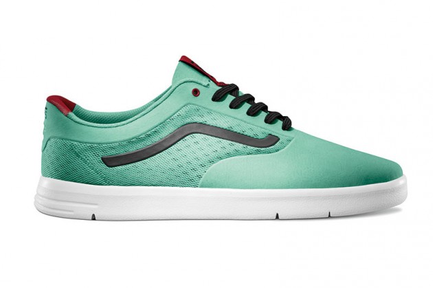 “Vans LXVI embodies forward-thinking design intended for the active lifestyle surrounding youth culture. LXVI is focused on delivering footwear that provides improved comfort, increased flexibility, and reduced weight through modern materials and innovative construction. Fall 2013 of LXVI introduces the “Mint & Red” pack, draped in mint hues and accented with hits of red, this collection presents updated colorways of the Graph, Numeral and Variable. The “Mint & Red” pack is available now at select Vans LXVI retailers.”