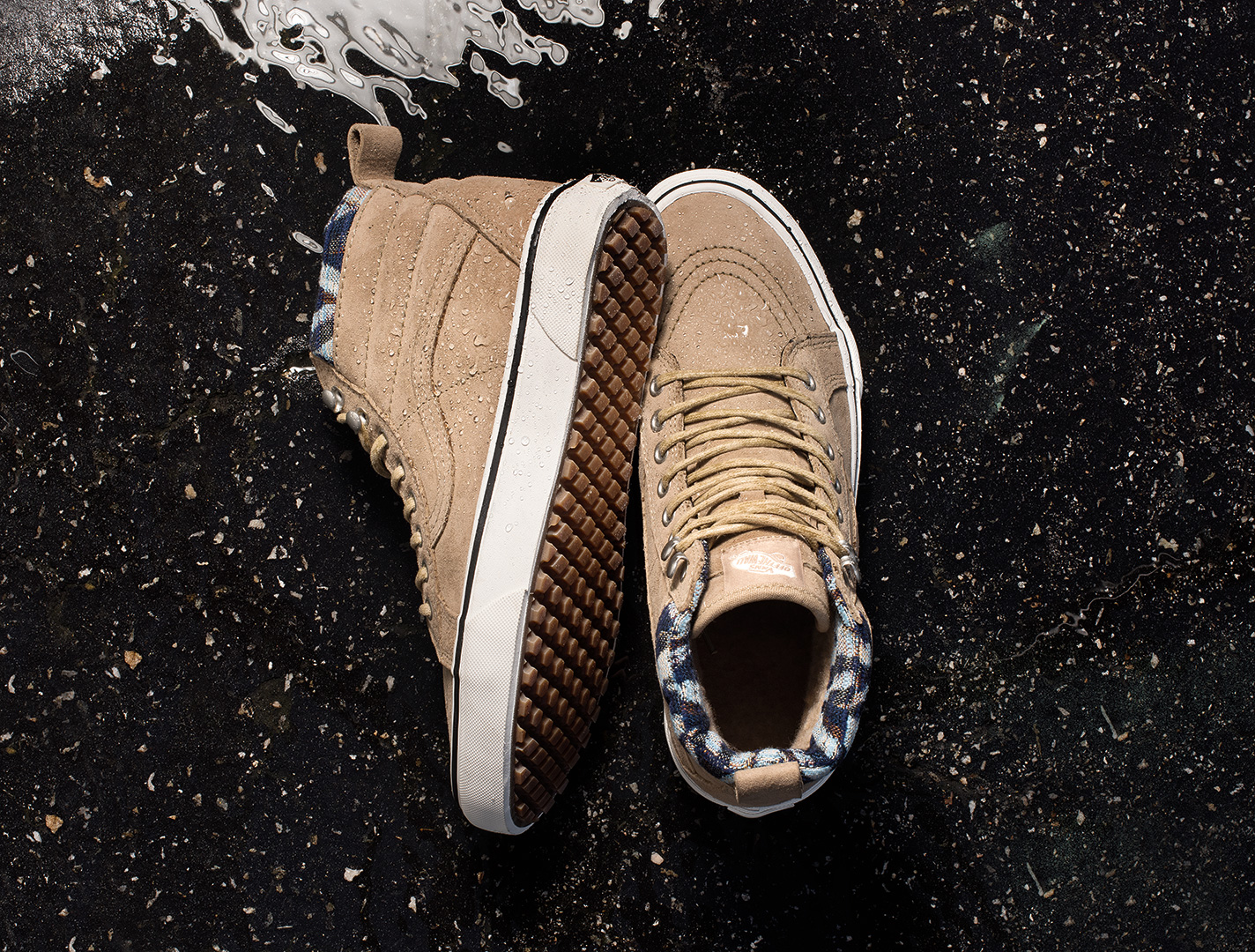 Vans, the original action sports footwear and apparel brand readies for the harsher seasons ahead with an updated collection of Mountain Edition footwear and apparel. Designed for the elements, the Vans Mountain Edition collection returns for fall with a selection of revamped Classics silhouettes, featuring Scotchgard®-coated uppers, warm linings and a heat retention layer between sockliner and outsole. In addition to the footwear program, Men’s Apparel presents an updated range of weather-treated outerwear just in time for the cold winter months.