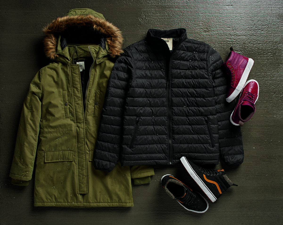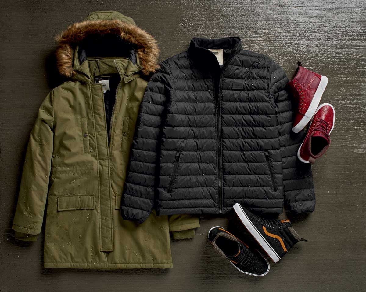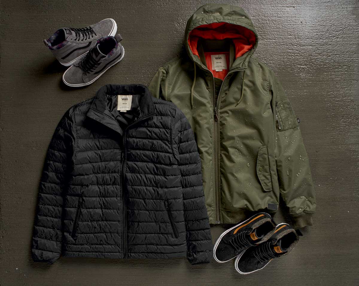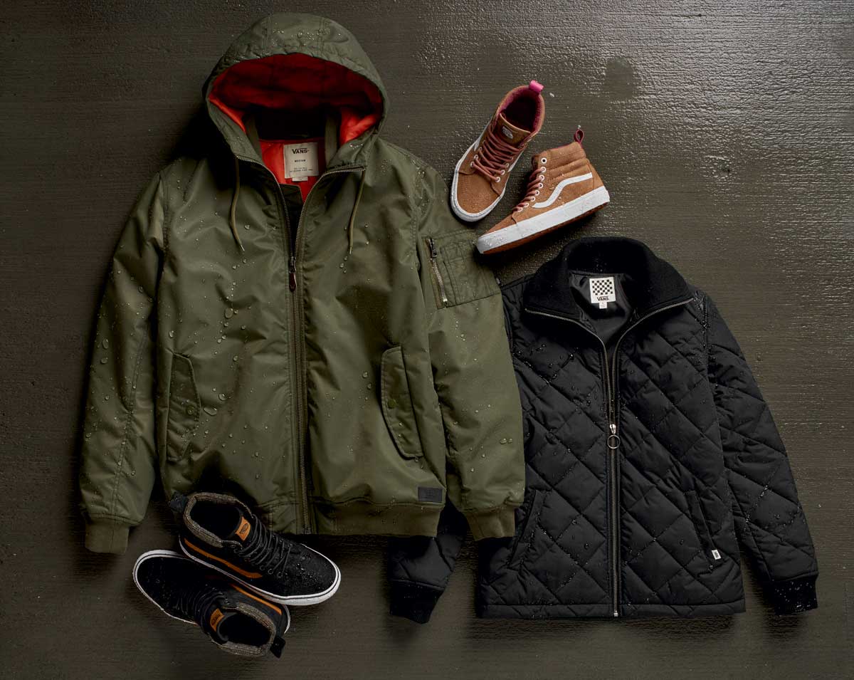 Designed for the elements, the fall ‘16 All Weather MTE collection presents outerwear pieces that mirror Vans’ MTE footwear innovation. Coated with durable water repellant (DWR), these progressive jackets will keep you warm and dry during the cold and wet winter seasons. The men’s apparel assortment offers a wide selection of jackets including the 66th Parallel MTE, the Kilroy MTE and the Junipero MTE. The 66th Parallel MTE jacket – a quilt puffer with a lightweight PrimaLoft® down blend – provides increased warmth, breathability and water resistance. Paying homage to the bomber trend, the Kilroy MTE is a hooded bomber with a quilted lining, perfect for crisp, frigid days. The Junipero MTE is traditional fisherman’s jacket, adapted for the elements with a breathable back ventilation slit to emphasize the definition of classic style with reliable function.