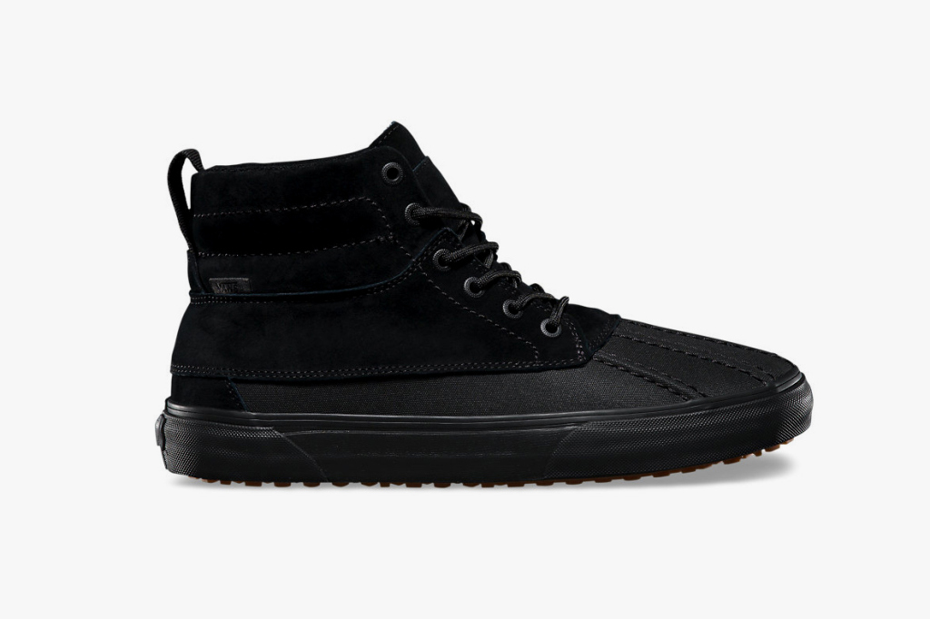 “Vans Classics has brought back its MTE design with an updated guise. The new iteration comes in all black, as well as a color-blocked ginger and black version with a clean white midsole. Featuring a suede upper along with a rubber toe and sidewall inspired by the classic duck boot, these kicks are befitting for the upcoming winter season. Both are treated with Scotchguard and include a unique reverse waffle outsole for extra traction and durability in the snow or rain. In addition, fleece linings and a heat retention layer between the sock-liner and sole help keep feet warm and dry.”