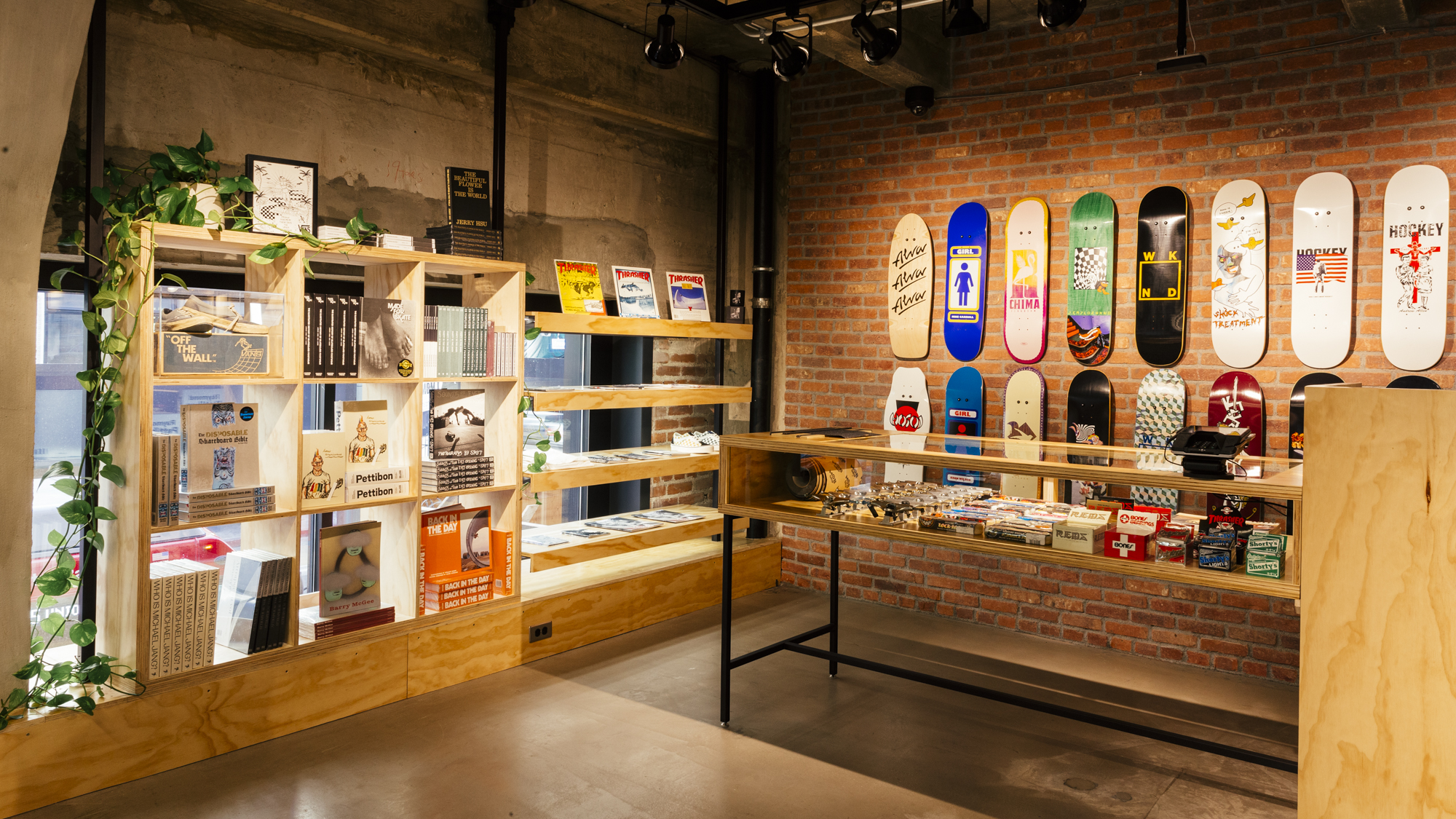 Furthering Vans commitment to LA skateboarding, the Vans DTLA store features a dedicated skate shop within the space that stocks hard goods from Los Angeles-based brands like Alva, Baker, Girl, and WKND alongside the full collection of Vans Pro Skate footwear and apparel. A selection of publications curated by DTLA gallery and store THESE DAYS rounds out the retail offering and gives customers a deeper look into local culture.