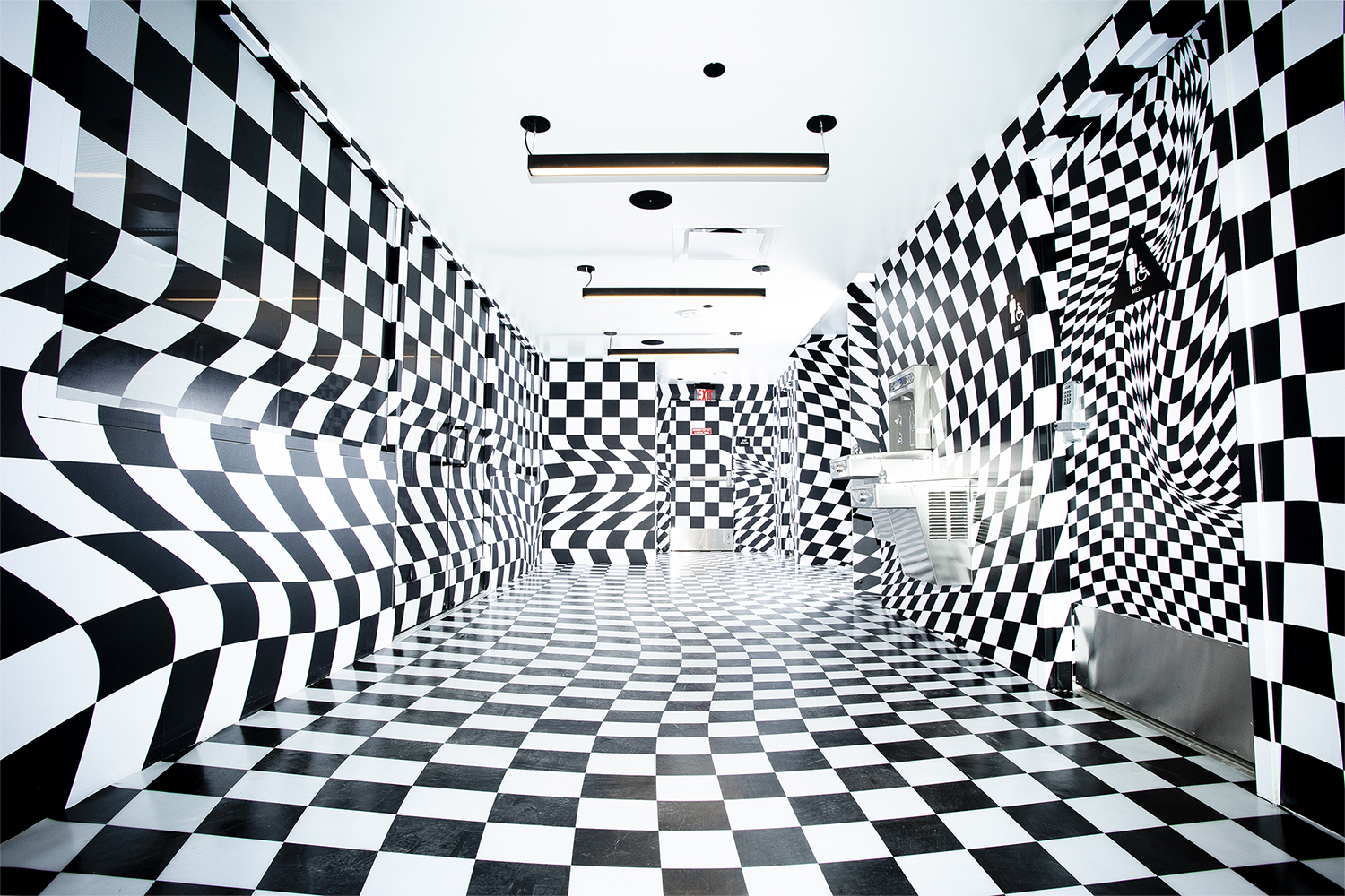 Located at 808 S. Broadway, Vans DTLA features a mural from LA-based artist and designer Geoff McFetridge, who accentuated the raw brick and concrete walls of the building with his signature colorful, minimalist work. Atmospheric photos by skate legends Mike O’Meally, Ray Barbee, Tino Razo and Anthony Acosta further highlight LA’s importance in skate culture. The space also showcases work by local sign painter Julien Besser.