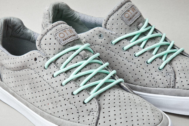 “Vans’ Lasdan model mixes court style with a modern sensibility. The low-cut vulc packs a visual punch in blend of grey nubuck and perforated pig suede triggered off with minty rope lacing. The Vans Lasdun will be available for select Vans stockists from March/April.”