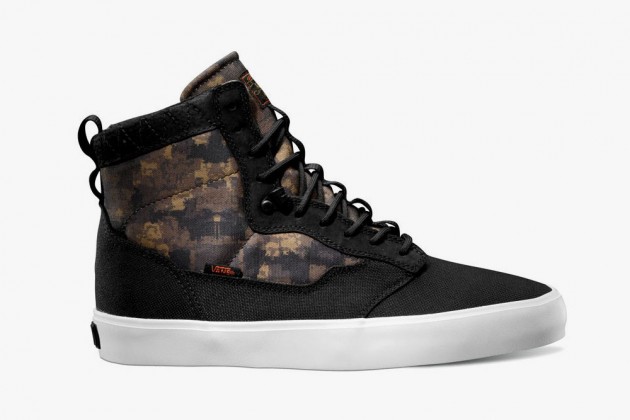 “The HyperStealth camo pack celebrates the spirit and utility inherent in military survival gear. For Fall 2013, HyperStealth has developed a custom camo which ties back to Vans’ checkerboard heritage. The Vans OTW collection presents a capsule of footwear, apparel, and accessories utilizing blue and brown variations of the subtle pattern. The Vans OTW x HyperStealth camo assortment brings forth updated colorways of the Bedford and Ludlow alongside the new Lynwood silhouette. The Lynwood’s aesthetic is influenced by vintage high-tops like the Vans Caballero, which is infused with modern sneaker sensibilities and utility styling.