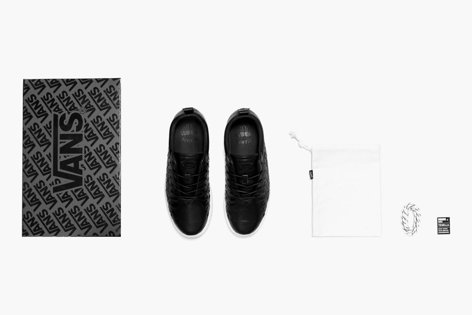 “In an interesting new team-up, Vans OTW has gotten together with Los Angeles brand Stampd. The collaboration for Fall 2014 is a new luxury take on the Vans OTW Tesella silhouette. Stampd is known for their clean and minimal aesthetic, and has applied exactly that to the low top sneaker. The sneaker comes with a butter soft calf leather upper in black and an UltraCush™ Lite outer sole, outfitted in a speckled finish. The added hand-woven leather upper is yet another nice touch, underlining the understated fashion that Stampd has become known for in the high-end streetwear market over the last few years. Having started with footwear in its early days, Stampd afterwards ventured in clothing, which is now its primary focus. It is nice to see them return to their roots with this footwear collaboration. The Vans OTW x Stampd Tesella will retail for $160 and launches at the Stampd pop-up shop (located at 8860 Sunset Blvd. in West Hollywood, CA) at 11 a.m. PST on August 2 and online at 12 a.m. PST on August 4 in the official Stampd online store.”