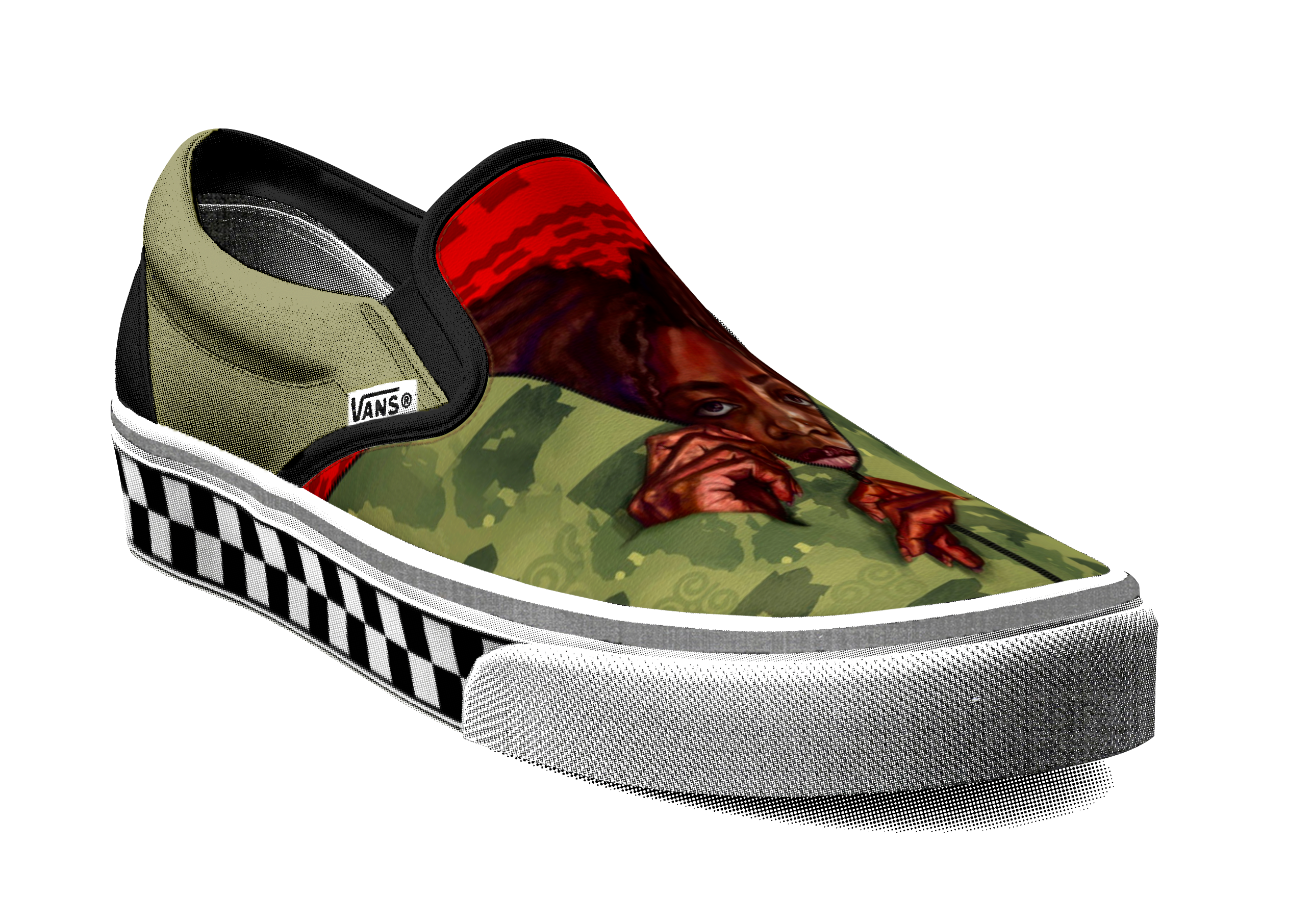 “The design is special, because for me, it goes way beyond a shoe. It brings my life as an artist full circle. As a child artist (like many young artists) and into adulthood, I’ve always drawn and painted on clothes, walls and shoes. My parents granted me such liberties. And now, as I am soon to become a 42-year-old Black woman, I have created art in all three mediums professionally and MY way. There’s something poetic and encouraging in that.”