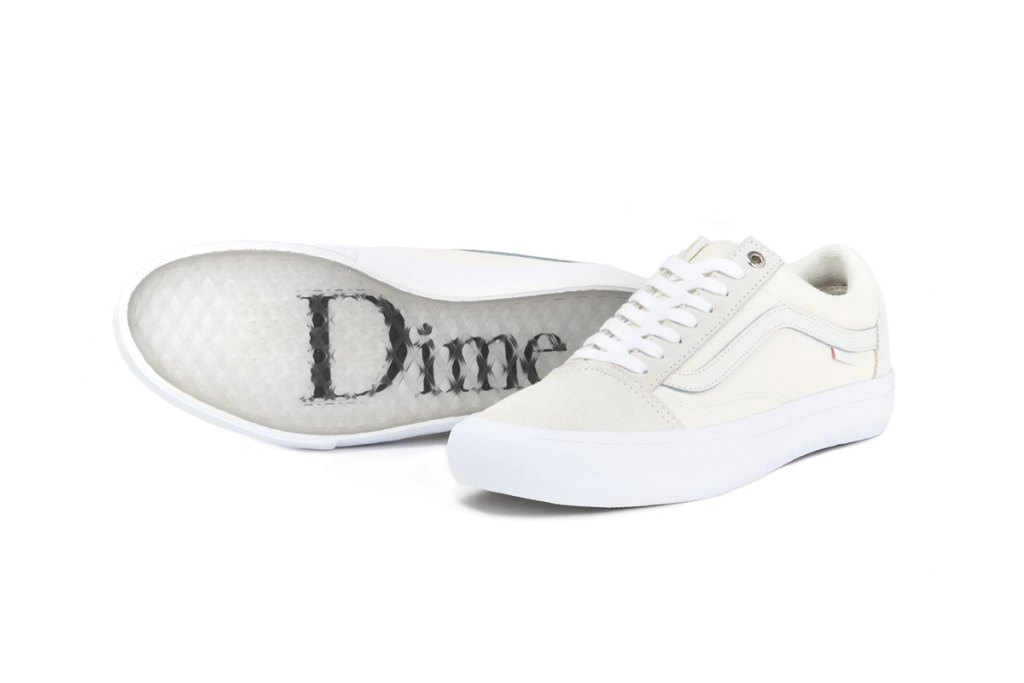 “Since last year’s collaboration on the Slip-On Pro, the partnership between Vans and Montreal skateboarding mainstay Dime continues with two new sneakers. The classic Old Skool Pro gets reworked in two colorways, optioned in cream white and navy. Both pairs feature a buttery upper with contrasting white midsoles and a translucent “Dime” branded outsole. The Fairlane gets a full makeover with a “Dream Blue” colorway and newfound Vans technology in the form of a Pro Lite cupsole and Ultracush HD sockliner. The three-piece capsule will be available on September 10 exclusively at the Vans x Dime pop-up in Montreal’s Plateau neighborhood. The pop-up shop opens for a week on September 10; the shoes will be available at select Stockists such as Supreme from September 17.”