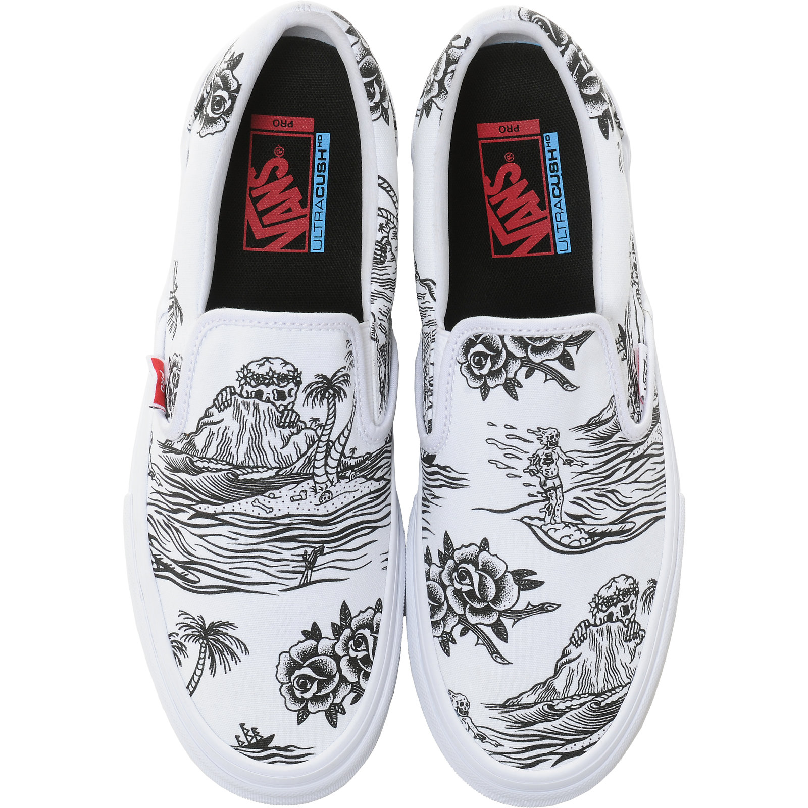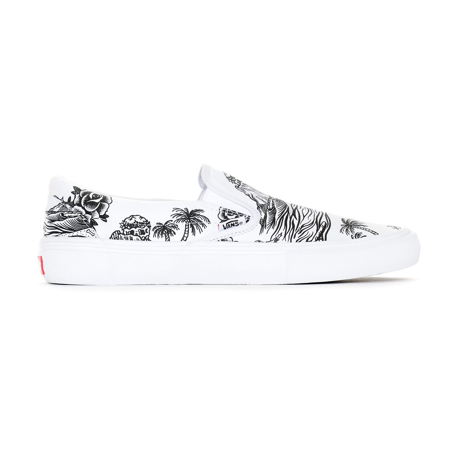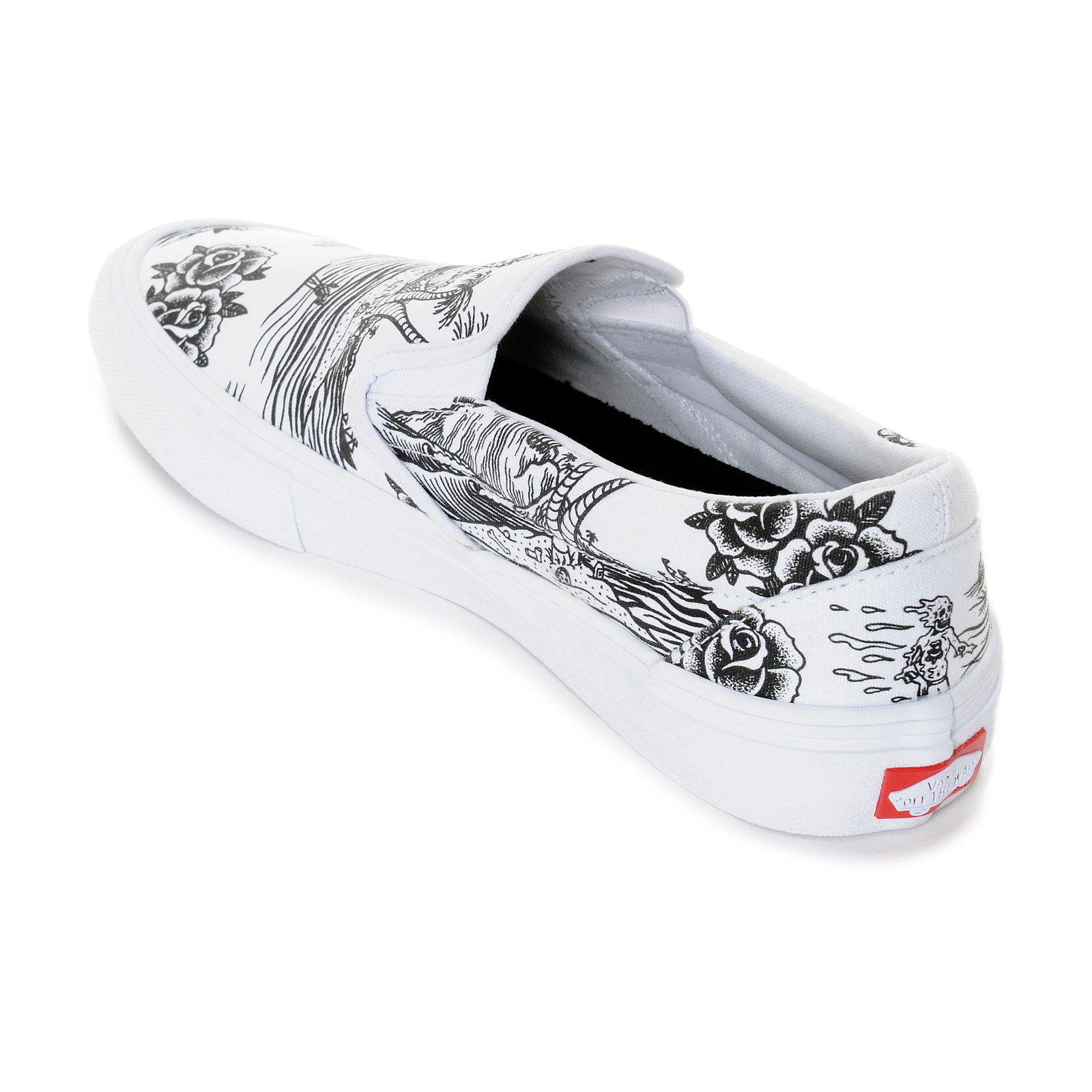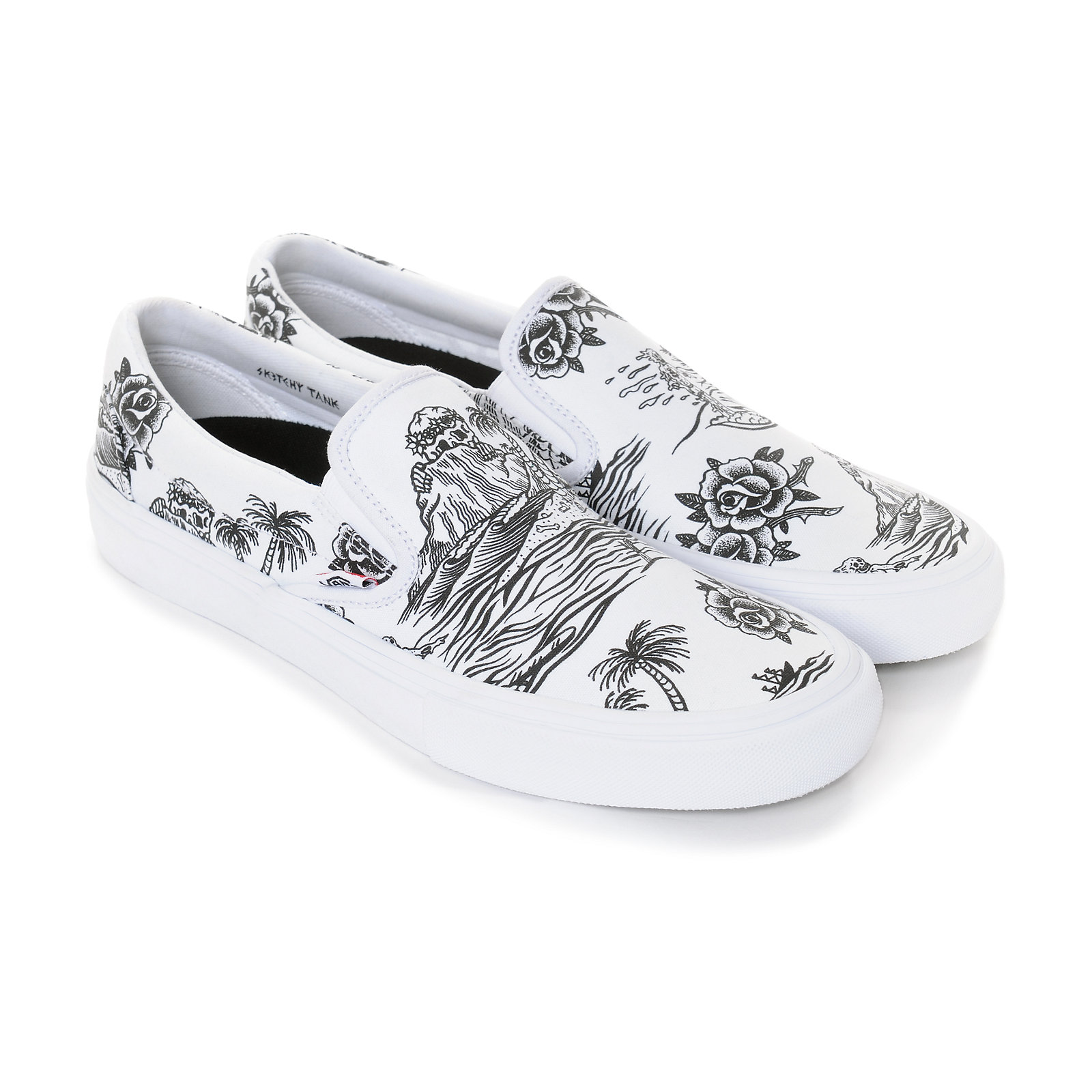 We’ve seen a few teaser photos of the Vans Pro x Sketchy Tank collab, but we now get to see the entire collection as it is all available on Zumiez as we speak. Stores also received a small allocation, but if you don’t want to risk it, then just purchase them online. The pack consists of a Sk8-Hi Pro in all canvas with Sketchy Tank accents on the jazz stripe, heel panel, and graphic on the waffle sole, a Style 112 Pro in all black with a small logo on the heel mustache, and a Slip-On Pro in all white, featuring tattoo-style artwork on the entire canvas upper. There are also a few apparel pieces to add to this rad collection. Go and cop now, or regret it later!