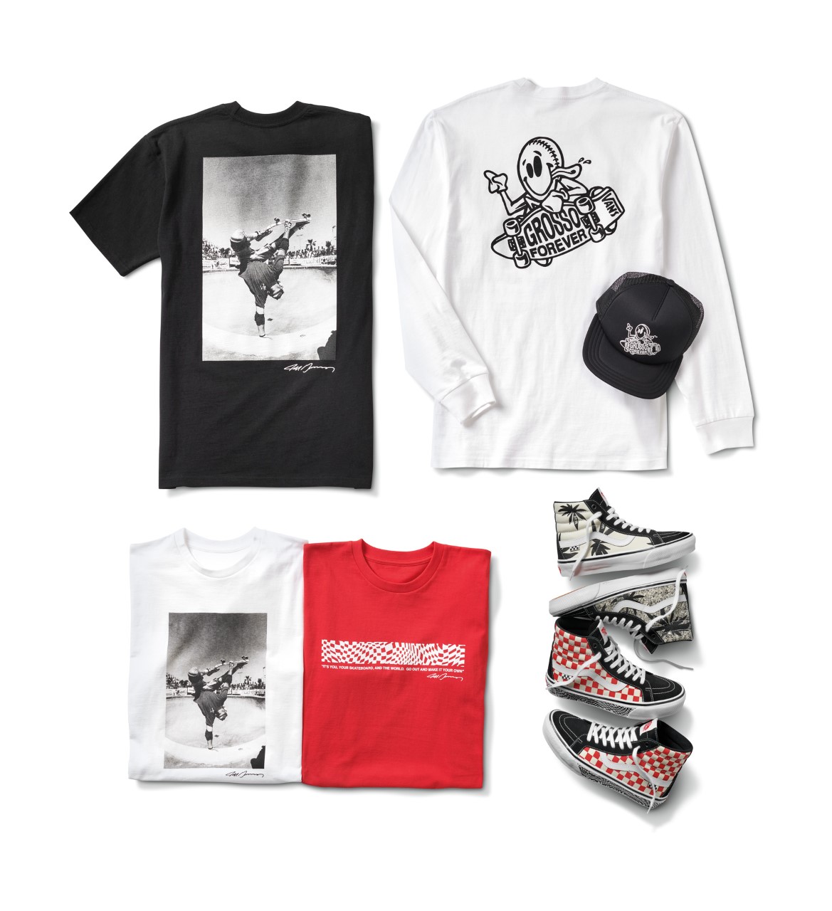 Jeff wore Vans for 50 years, and the Grosso Forever collection features iconic designs that he sported during formative moments in his early career. Royalties from this collection will go directly to Jeff’s son, Oliver.