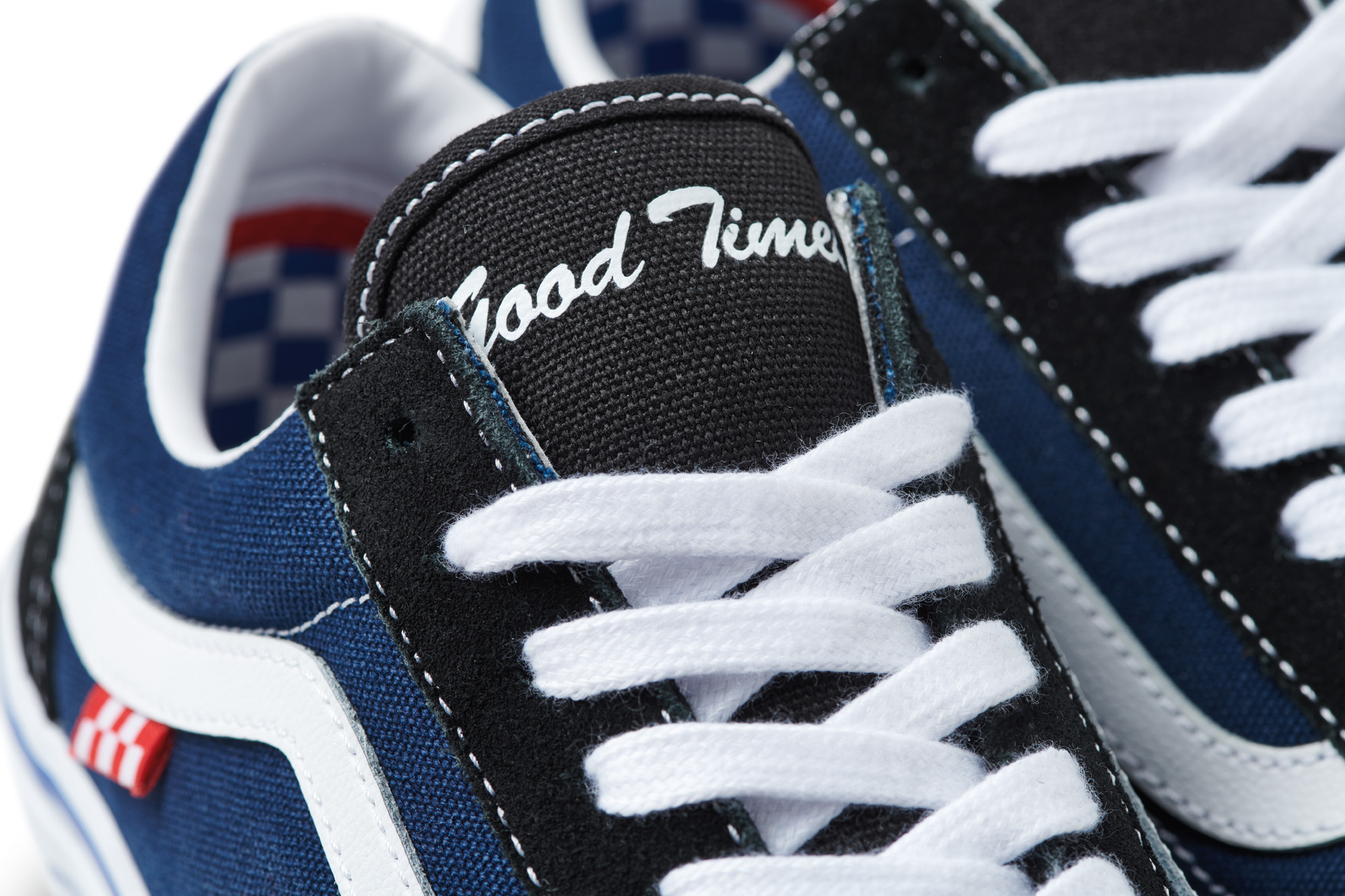 Vans x Boys of Summer leads with the Skate Old Skool in a navy and black Jerry Hsu/Baby Girl colorway with a navy canvas quarter, black suede overlays and black foxing stripe. A white Sidestripe offers a classic Vans aesthetic, complimented by the shoe’s namesakes on the heel counters. “Good Times, Bad Times” is written on the exterior tongue, while “Boys of Summer” wraps the rubber sidewalls.