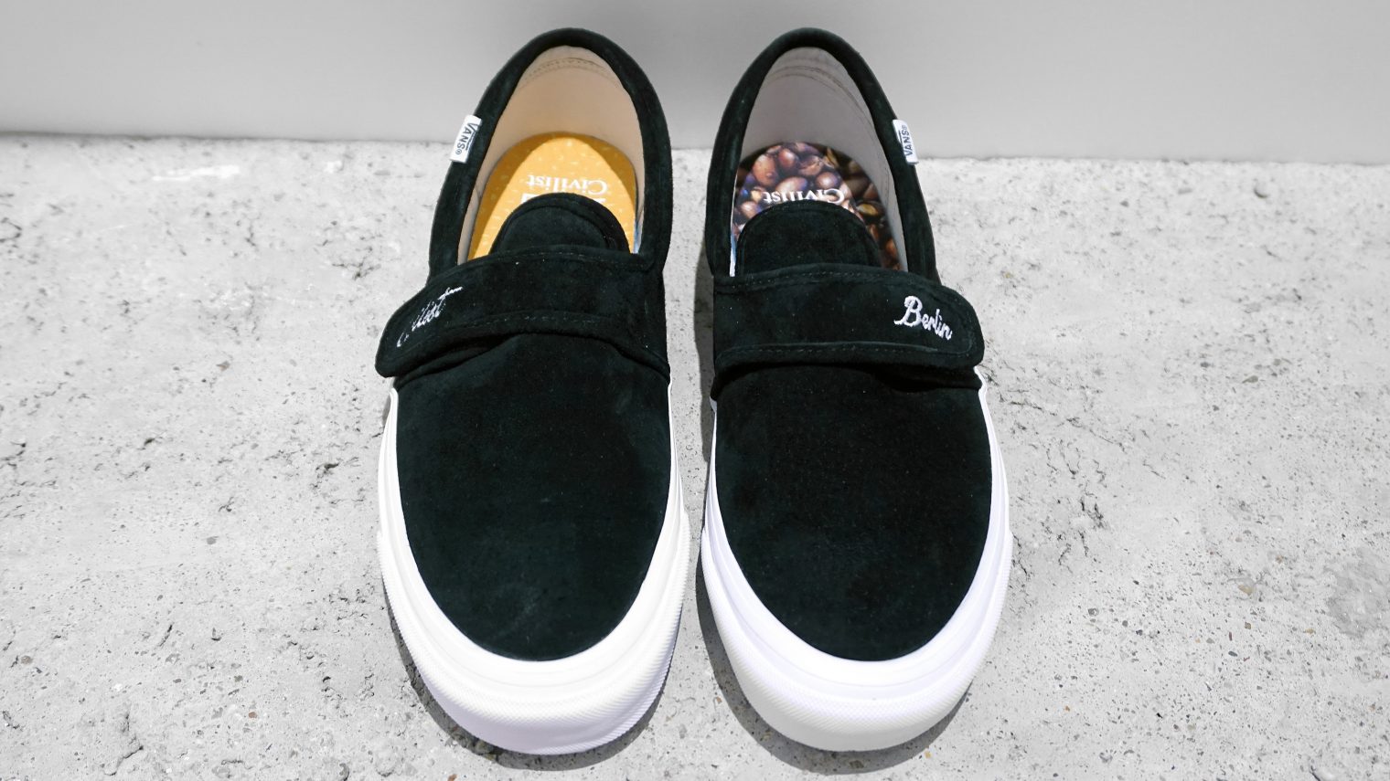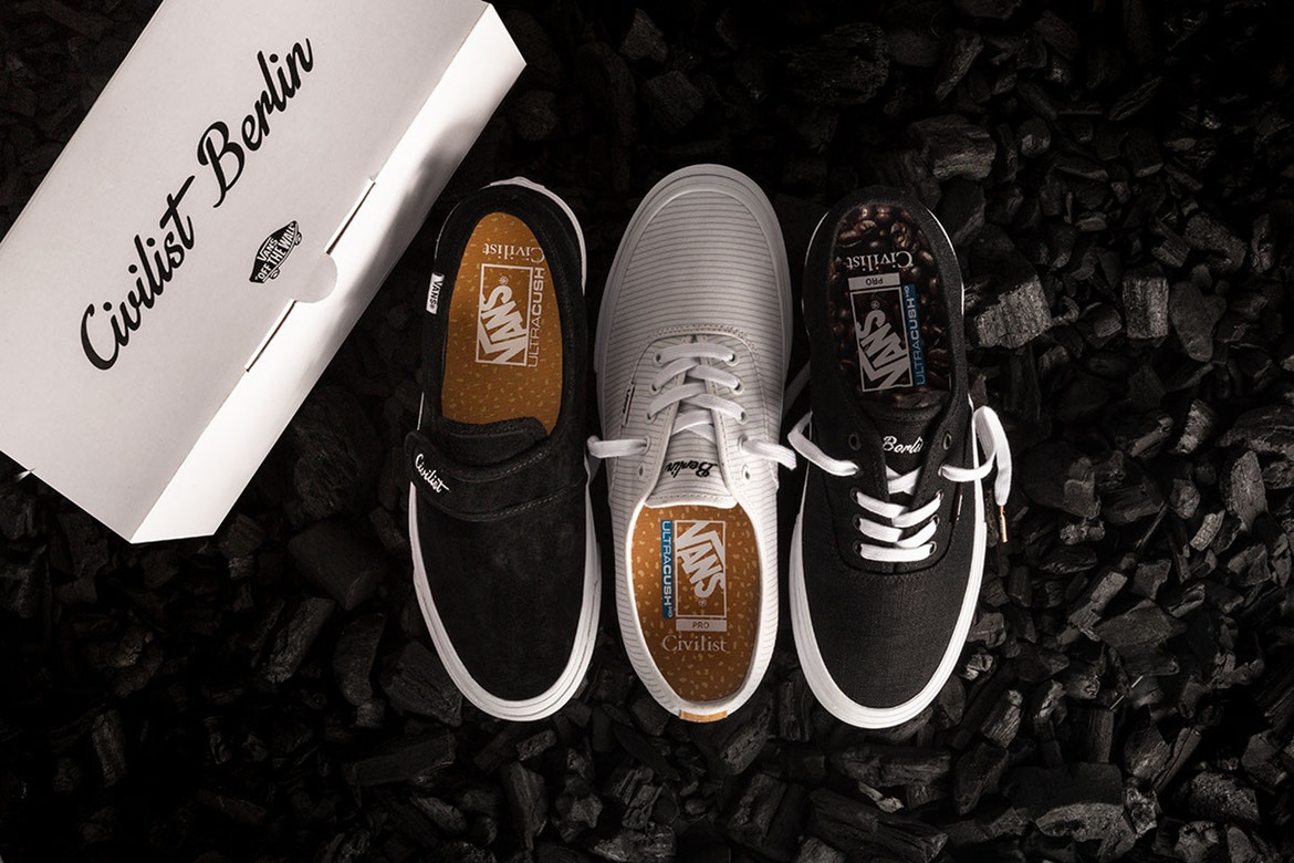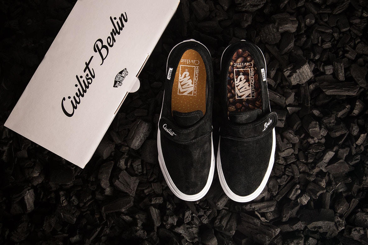 Berlin’s Civilist has joined forces with Vans on a limited edition footwear pack titled “Coffee & Cigarettes.” The collaborative offering consists of two Authentic Pro variants alongside one Style 47 DX iteration that was inspired by the Slip-On Velcro model. Conclusively, graphic motifs of coffee beans and cigarette butts are aptly embellished on the insoles of each shoe.