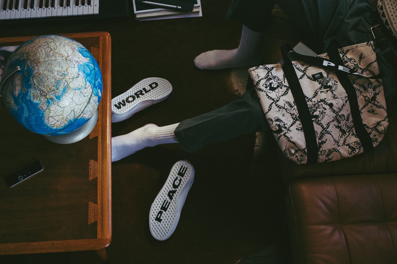The shoes are also accompanied by a special tote bag with a jacquard cherub print, inspired by a vintage sewing bag gifted to Henry by his aunt. To further the collection’s ethos of giving back and world peace, Vans has also donated $10,000 USD to Big Brothers Big Sisters of Central Ohio — Henry’s home state.