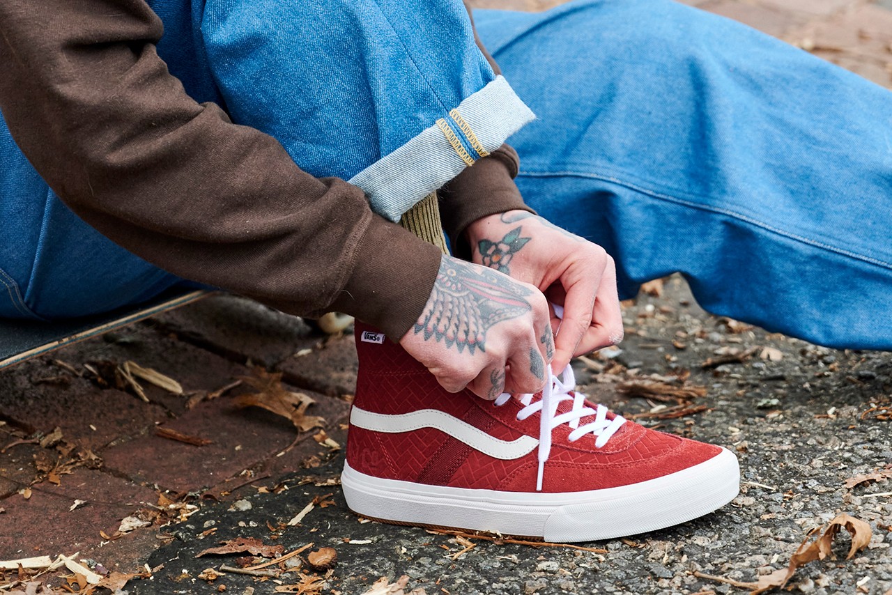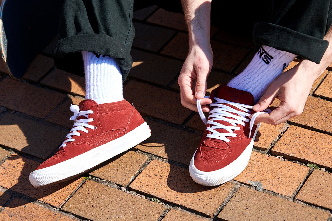 What most may not know is that some of the most iconic skateboard spots on the East Coast are made with Sayre & Fisher bricks. To pay homage to their first location where they remained for a decade until closing after Hurricane Sandy, as well as the S&F Brick Co and their skateboarding roots, NJ Skateshop partnered with the legendary footwear brand, Vans, to create an NJ Co shirt and three limited edition brick embossed suede skate shoes: The Half Cab. The Slip On Pro and The Gilbert Crockett Hi.