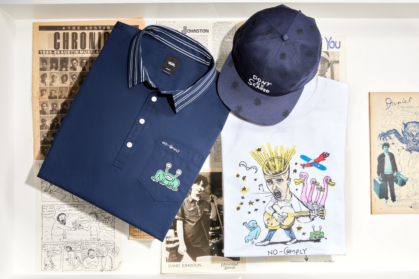 With the creation of the third Vans x No-Comply x Daniel Johnston collection, No Comply had the opportunity to continue their partnership by supporting The Contemporary Austin in their exhibition “I Live My Broken Dreams”, Daniel Johnston’s first ever museum exhibition, currently on display through March 20th; and also by supporting a Daniel Johnston mural on the wall of The Contemporary Austin. The experience of their exclusive release will include a viewing of the mural, followed by a walk through of the full exhibition and an invitation to the celebration on March 19th.