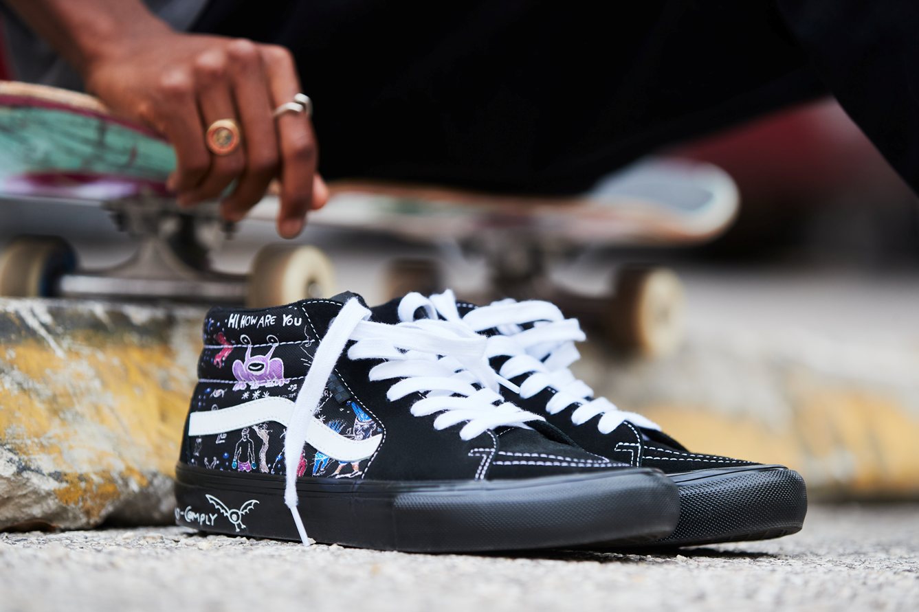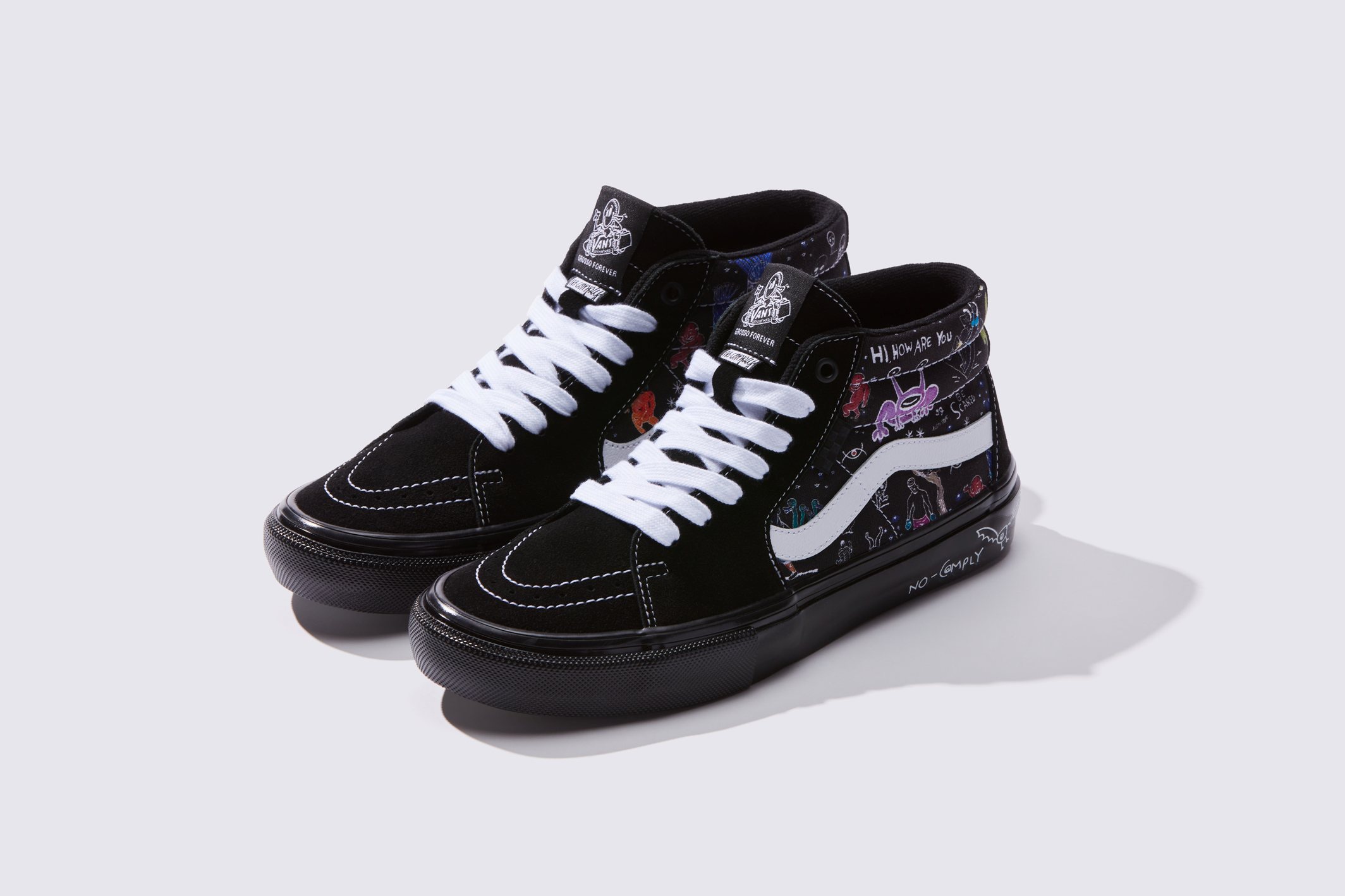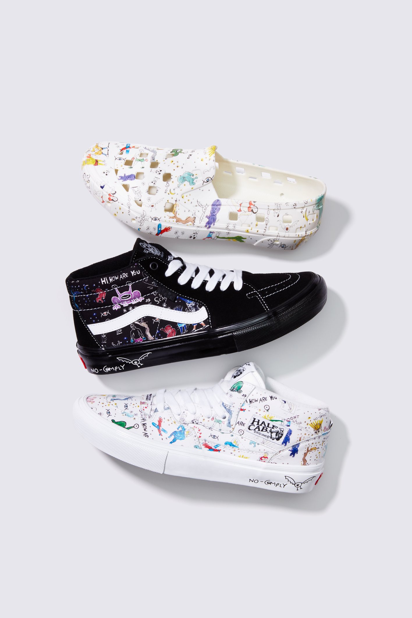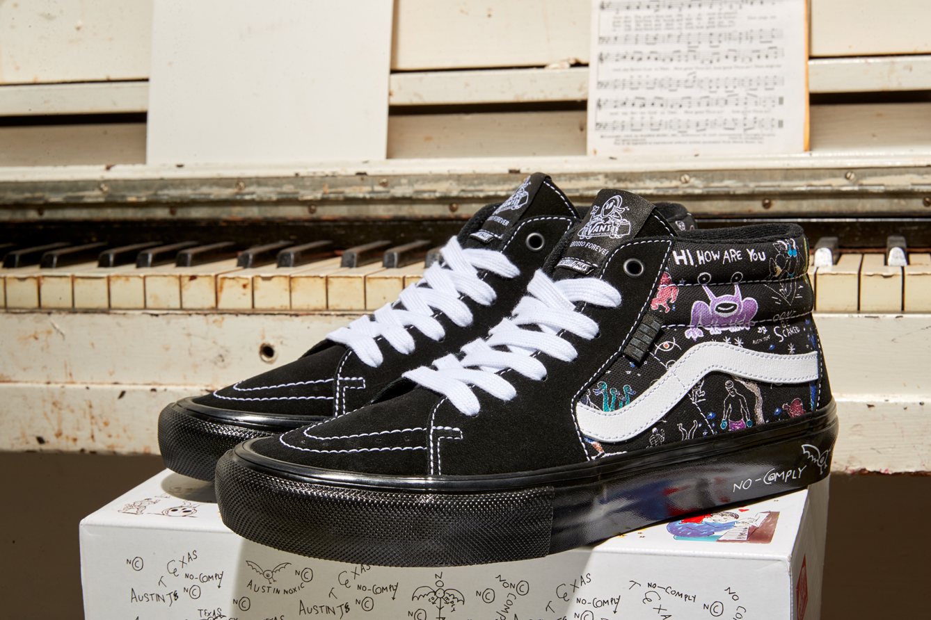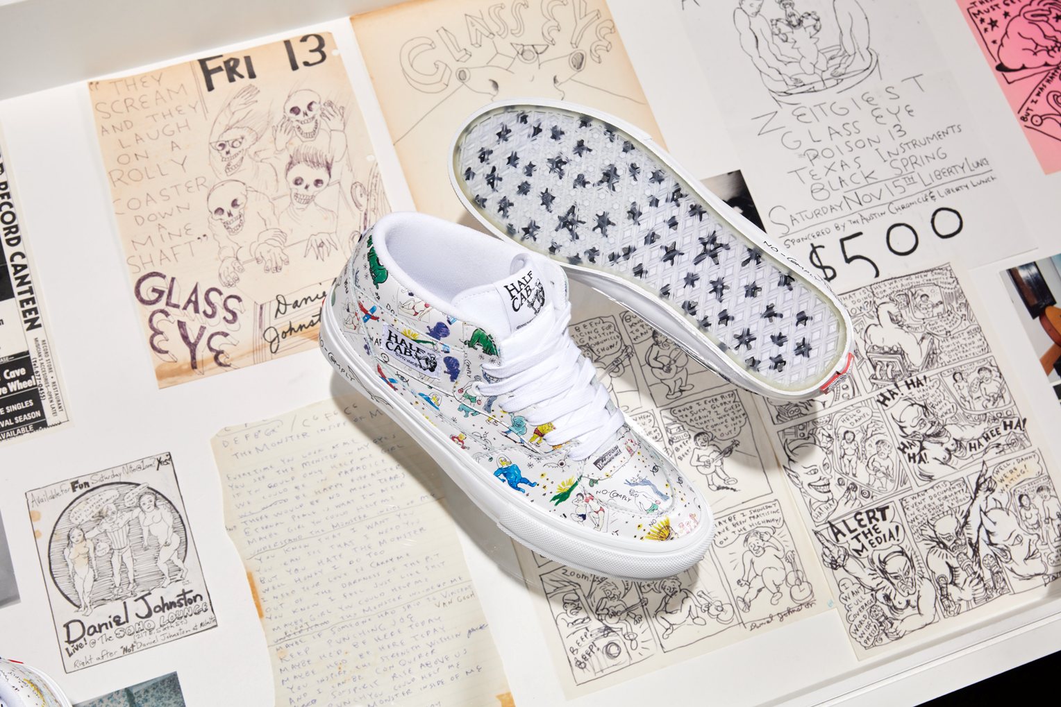 Locally grown in Austin, Texas, No-Comply Skateshop celebrates 15 years with the release of their third exclusive collaboration with Vans Skateboarding. No-Comply is honored to have its endeavors represented by the art and memory of Austin legend Daniel Johnston. A portion of the footwear sales will benefit the ‘Hi, How Are You Project’ and its mission to encourage open conversations around mental health.