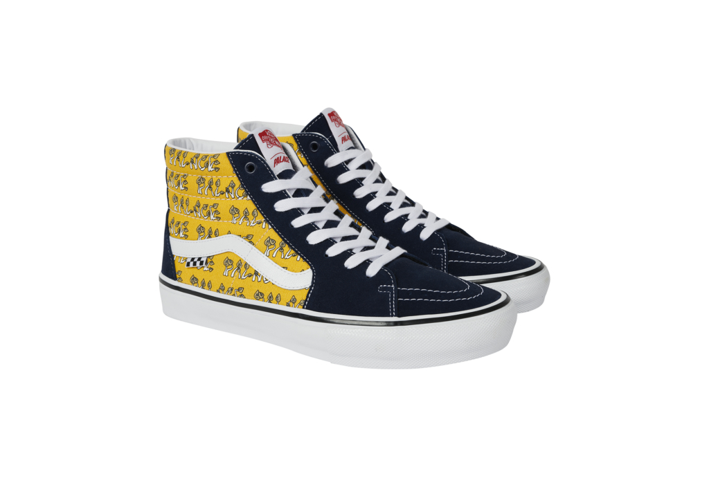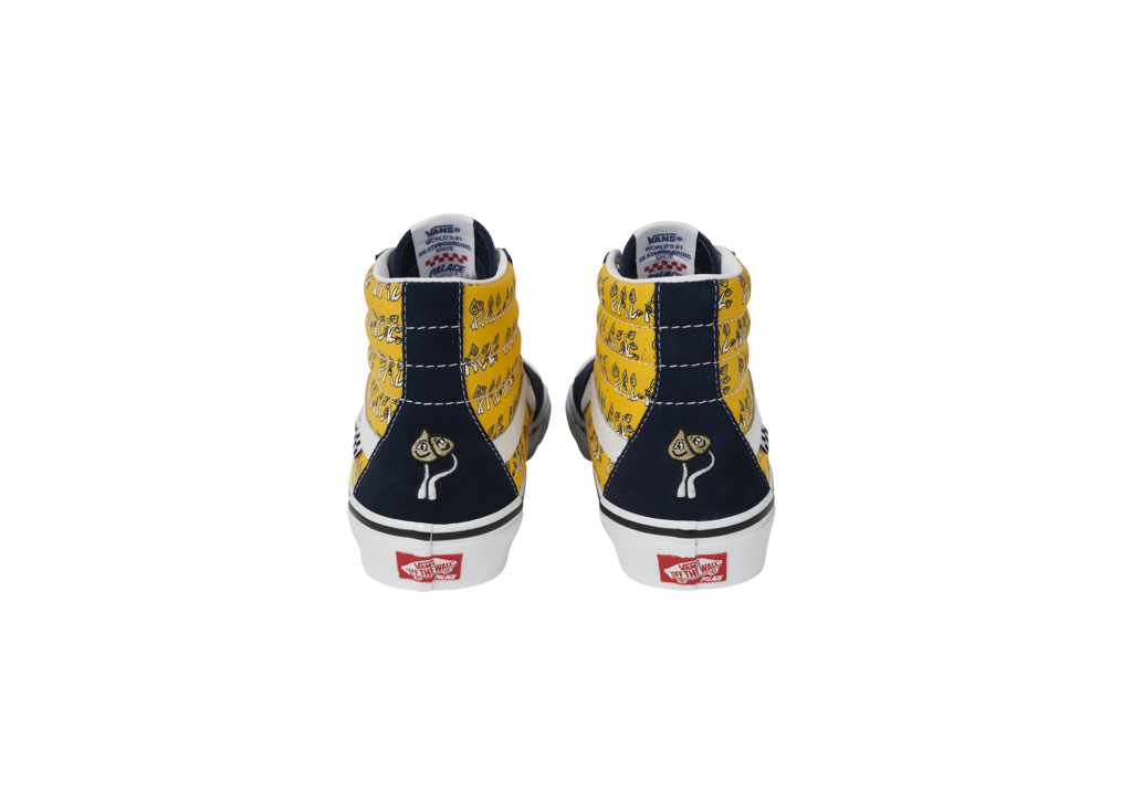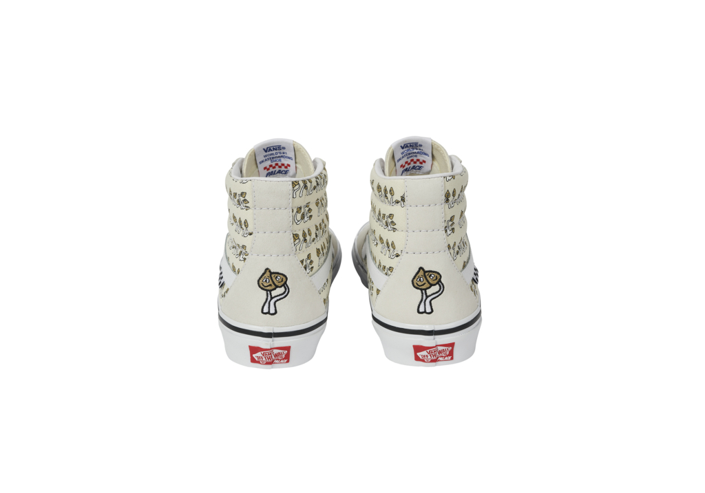 Back in June, Vans and London based skate brand Palace teamed up for their first, long-awaited collaboration, featuring the Skate Authentic and Palace’s employee-of-the-month, Jeremy the Duck. For this second drop, the two brands turned their attention to another iconic style – the Skate Sk8-Hi. The collection includes three colorways – Black / Blue, Marshmallow and Yellow – covered in some friendly Palace shrooms.
