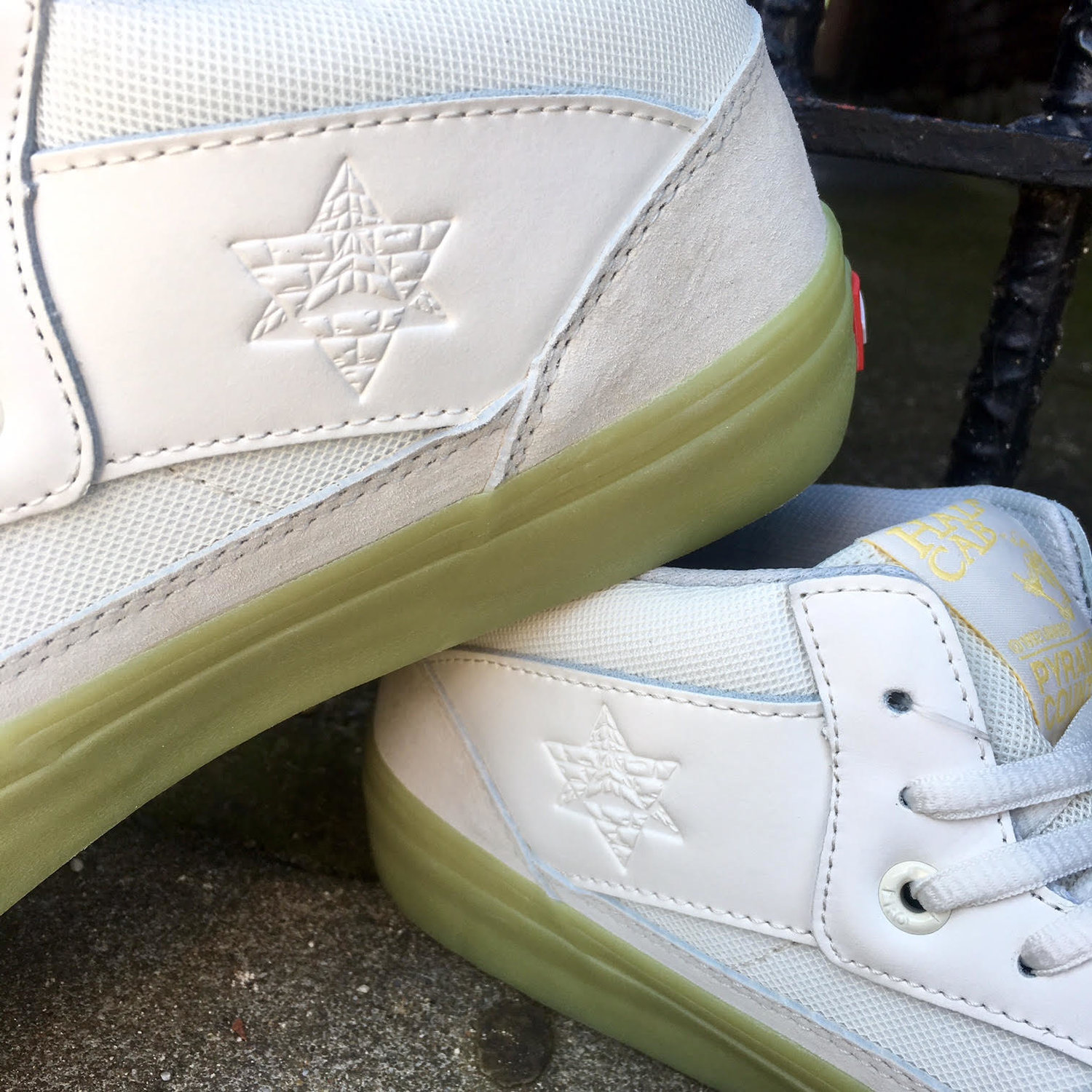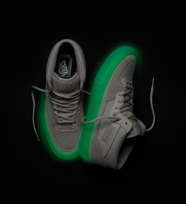 Paying homage to the vibrant glow that is the Arizona skateboarding scene, the new Vans Pro Skate Half Cab Pro by Pyramid Country highlights a rich crepe gum foxing and outsole that entirely glows in the dark. The Half Cab Pro is equipped with Vans’ proven UltraCush HD sockliners for superior cushioning and boardfeel, Duracap reinforced uppers for enhanced durability, and Vans’ original waffle sole for the most reliable grip in the industry. As a fitting ode to the iconic skate shoe, the Half Cab model also celebrates its 25 year on shelves this fall.”